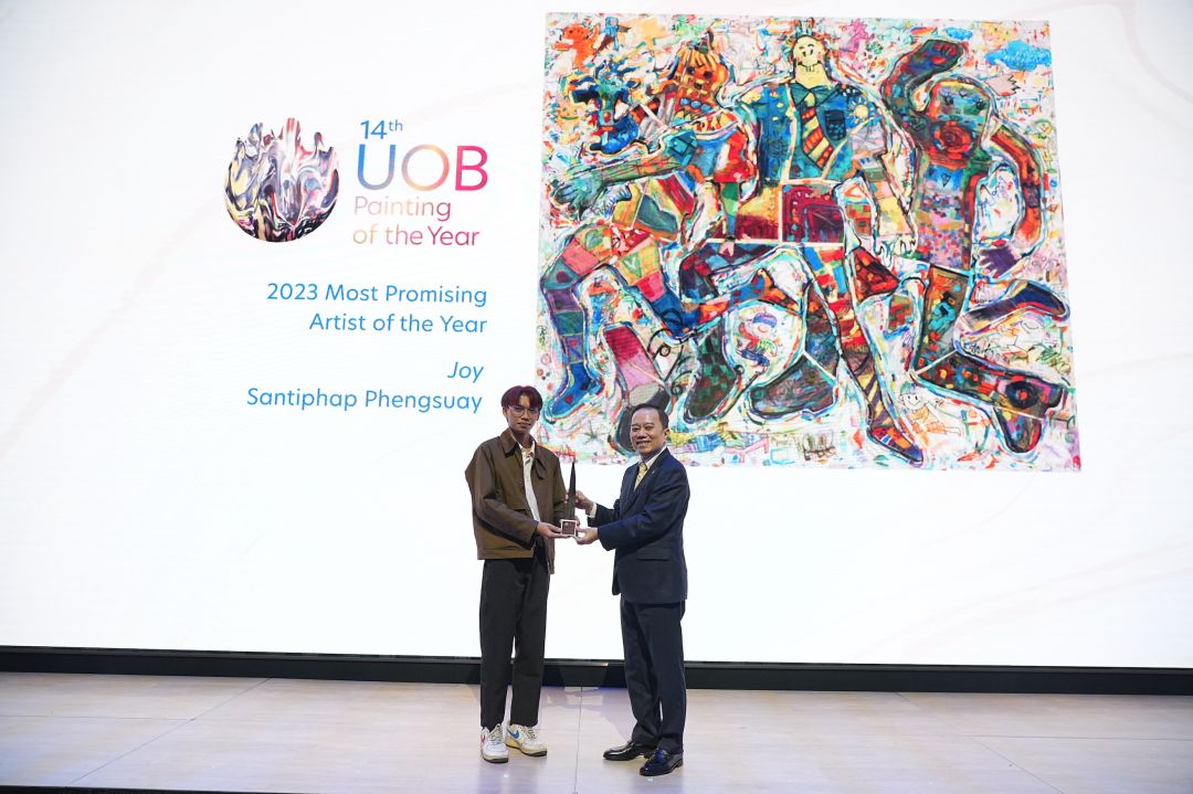 ธนาคารยูโอบี ประเทศไทย มอบรางวัลชนะเลิศ การประกวดจิตรกรรมยูโอบี ประจำปี 2566 แก่ นางสาวปรัชญา เจริญสุข อายุ 26 ปี จากผลงาน ปากน้ำชุมพร ที่มีความโดดเด่นที่สุดจากผลงานทั้งหมดที่ส่งเข้าประกวดในปีนี้