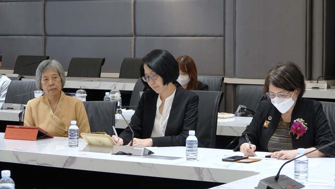 รศ. ดร.ปัทมาวดี โพชนุกูล ผู้อำนวยการ สำนักงานคณะกรรมการส่งเสริมวิทยาศาสตร์ วิจัยและนวัตกรรม (สกสว.) พร้อมด้วย ผศ. ดร.แพร ศิริศักดิ์ดำเกิง ผู้ทรงคุณวุฒิ สกสว.