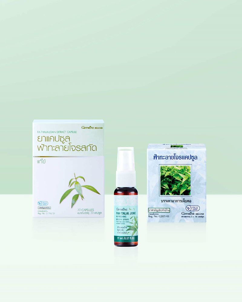 กิฟฟารีน ผู้นำแบรนด์เพื่อสุขภาพและยืนหนึ่งเรื่องสมุนไพร ได้ค้นคว้าผลิตภัณฑ์เพื่อสุขภาพให้กับคนไทย นำฟ้าทะลายโจรพัฒนาให้อยู่ในรูปแบบที่สามารถรับประทาน และใช้งานได้ง่ายขึ้น กับ 3 ผลิตภัณฑ์ จากฟ้าทะลายโจรคือ ยาแคปซูลฟ้าทะลายโจรสกัดฟ้าทะลายโจรแคปซูล และฟ้าทะลายโจรรีเฟรชชิ่ง เม้าท์ สเปรย์