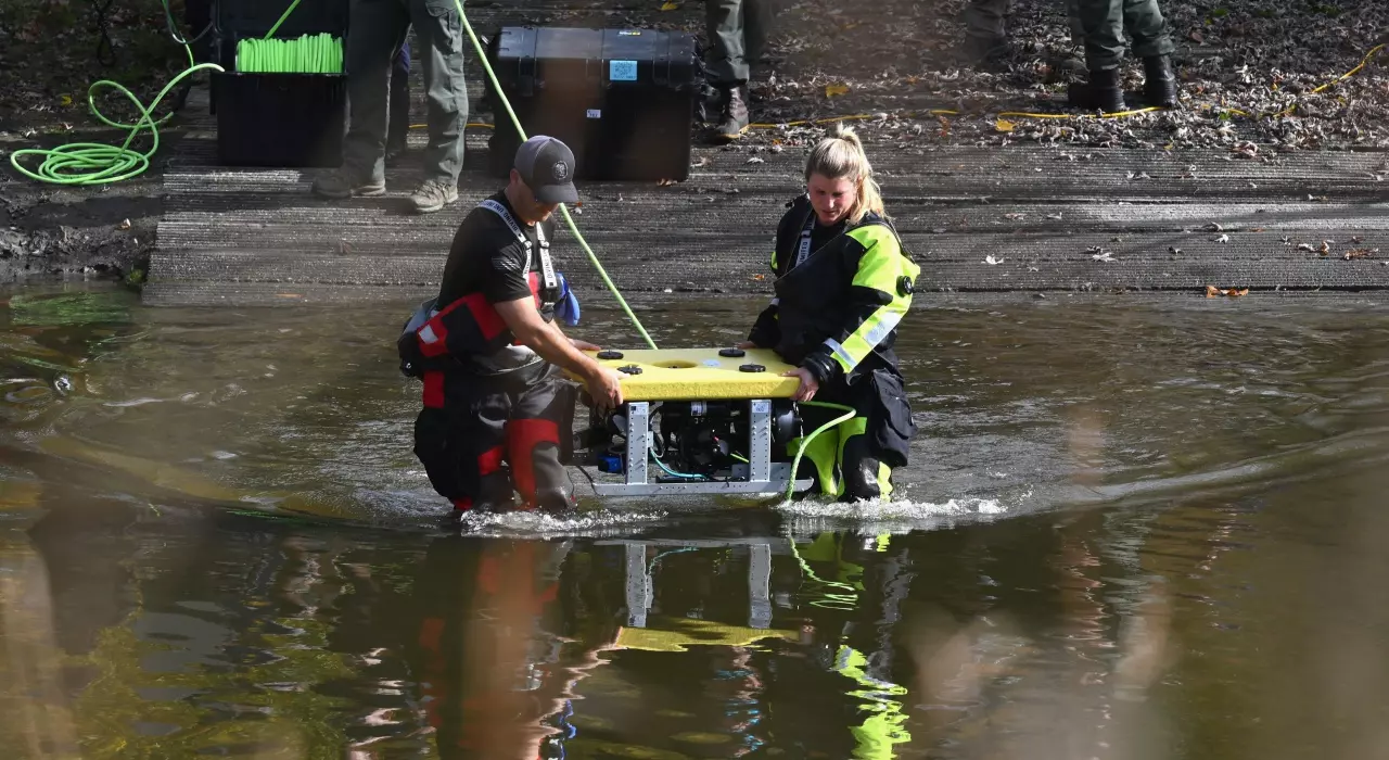 นอกจากการค้นหาตามจุดต่างๆ แล้ว ตำรวจยังได้ขอกำลังนักประดาน้ำให้ลงงมหาเบาะแสของคนร้ายในแม่น้ำแอนโดรสก็อกกิน ที่อยู่ใกล้เมืองลิสบอน ห่างจากเมืองเลวิสตันที่เกิดเหตุราว 11 กิโลเมตร หลังพบรถเอสยูวีสีขาวของนายคาร์ด จอดอยู่ใกล้เคียง โดยใช้ระบบโซนาร์ช่วยค้นหาหลักฐาน หรืออาจจะเป็นร่างไร้วิญญาณของนายคาร์ด โดยตั้งสมมติฐานว่านายคาร์ดอาจจะจอดรถทิ้งไว้ และหลบหนีไปทางน้ำ หรืออาจจะหลบหนีเข้าป่า รวมไปถึงอาจจะจบชีวิตตัวเองเพื่อหนีความผิด