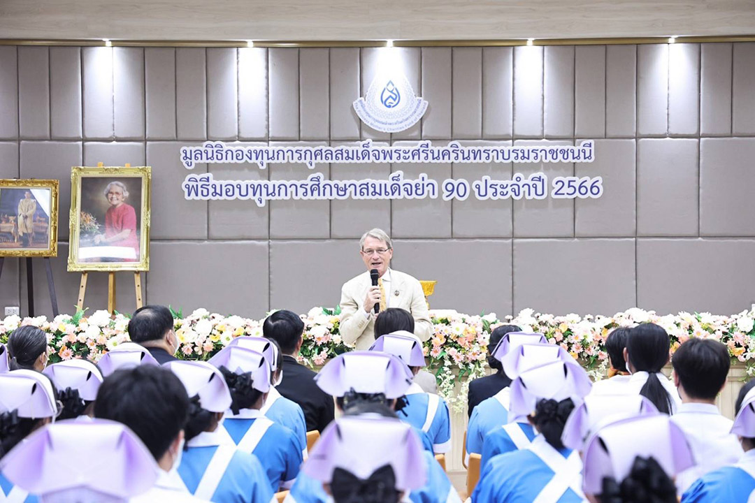 ดร. ฮาราลด์ ลิงค์ เปิดเผยว่า ขอแสดงความยินดีกับนักศึกษาพยาบาลทุกคนที่ได้รับทุนการศึกษาในปีนี้ ตามวัตถุประสงค์หลักของมูลนิธิฯ ที่มุ่งให้การสนับสนุนทุนแก่นักศึกษาพยาบาล เพื่อสืบทอดอุดมการณ์วิชาชีพพยาบาลที่สมเด็จพระศรีนครินทราบรมราชชนนี ทรงปฏิบัติตนเป็นแบบอย่างที่ดี เสียสละ และยึดถือประโยชน์สุขของส่วนรวมเป็นที่ตั้ง อีกทั้งเพื่อส่งเสริมบุคลากรพยาบาลให้มีคุณภาพ ทั้งด้านความรู้ ความสามารถ และด้านจริยธรรม เป็นที่พึ่งพาของผู้ป่วยได้ พร้อมสร้างคุณประโยชน์ให้แก่สังคมและประเทศชาติสืบไป โดยปีนี้มูลนิธิฯ ได้มอบ “ทุนการศึกษาสมเด็จย่า 90” ให้แก่สถาบันการศึกษาต่างๆ ดังนี้ วิทยาลัยพยาบาลราชชนนี 30 แห่งทั่วประเทศ เป็นจำนวน 840 ทุน วิทยาลัยพยาบาลกองทัพบก จำนวน 80 ทุน วิทยาลัยพยาบาลกองทัพเรือ จำนวน 80 ทุน วิทยาลัยพยาบาลทหารอากาศ จำนวน 40 ทุน และวิทยาลัยพยาบาลตำรวจ จำนวน 20 ทุน