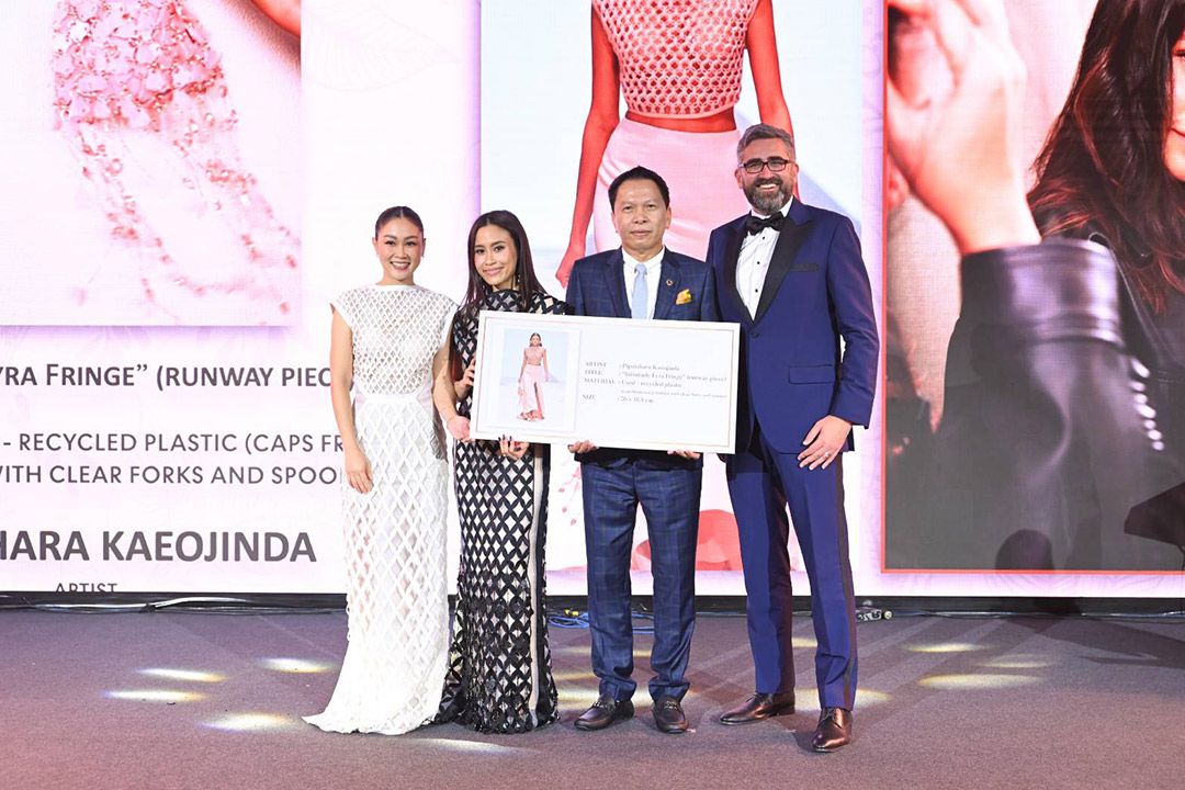 นอกจากนี้ไฮไลท์ของงานในค่ำคืนสุดพิเศษ คือการร่วมประมูลผลงานมาสเตอร์พีซของเหล่าศิลปินที่ทุ่มเทแรงกายแรงใจรังสรรค์ผลงาน ทั้ง 4 ชิ้น ได้แก่ “Metamorphosis A Tale in Textile”, 2019 ของคุณเพลินจันทร์ วิญญรัตน์ เป็นผลงานที่ทำจากเศษผ้า และเส้นด้ายเส้นใยต่างๆ ซึ่งเป็นเครื่องยืนยันถึงความทุ่มเทของคุณมุกกว่า 20 ปี ในฐานะศิลปินผู้สร้างสรรค์ผลงาน, “Cocoon Earth” ผลงานของคุณสมนึก คลังนอก หรือครูปาน ผลงานนี้ใช้เทคนิคการวาดด้วยสี Acrylics บน Canvas ส่วนผลงานชิ้นที่ 3 คือ “MookmooK’ ของคุณธีรพจน์ ธีโรภาส redesign มาจากเก้าอี้ “Peacock chair” หรือที่เรียกติดปากว่า “เก้าอี้นางงาม” ซึ่งใช้วัสดุที่เป็นมิตรต่อสิ่งแวดล้อมนั่นก็คือพลาสติด recycle และเยื่อกาแฟ และผลงานชิ้นสุดท้าย คือ กระเป๋า “Infinitude Lyra Fringe” ส่งตรงจาก Runway ใน Collection ล่าสุดของแบรนด์ PIPATCHARA โดยใช้ฝาขวดพลาสติกที่ใช้แล้วนำกลับมาใช้ใหม่ และช้อนส้อมพลาสติกใส เป็นผลงานของคุณภิพัชรา แก้วจินดา