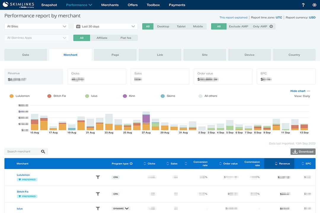 โดยหนึ่งในฟีเจอร์เด่นที่ Skimlinks นำมาใช้พัฒนาเนื้อหา ได้แก่ Skimlinks JavaScript ซึ่งจะทำหน้าที่แปลงลิงก์โปรโมทผลิตภัณฑ์ทั่วไปที่อยู่ในบทความของ Bangkok Post Guru ให้เป็น Affiliate Link ที่เชื่อมโยงไปถึงโปรแกรมและผู้ค้าที่เกี่ยวข้องแต่ละรายในเครือข่ายของ Skimlinks นอกจากนี้ บางกอกโพสต์ยังใช้ Publisher Hub ของ Skimlinks ที่จะนำส่งสรุปข้อมูลสำคัญผ่านหน้าจอการรายงานหรือแดชบอร์ด (Reporting Dashboard) ที่มีความโปร่งใสและตรวจสอบได้ เพื่อติดตามประสิทธิภาพและวิเคราะห์ผลตอบแทนจากการลงทุน (ROI) ของเนื้อหาเชิงพาณิชย์เหล่านั้นได้อย่างมีประสิทธิภาพ แดชบอร์ดนี้จะช่วยระบุได้ว่าบทความและ Affiliate Link ใดที่สร้างรายได้สูงสุด และช่วยสรุปข้อมูลสำคัญ อาทิ ประสิทธิภาพของโดเมน รายได้ ยอดการคลิกเข้าชมแบบเรียลไทม์และผลิตภัณฑ์ยอดนิยม