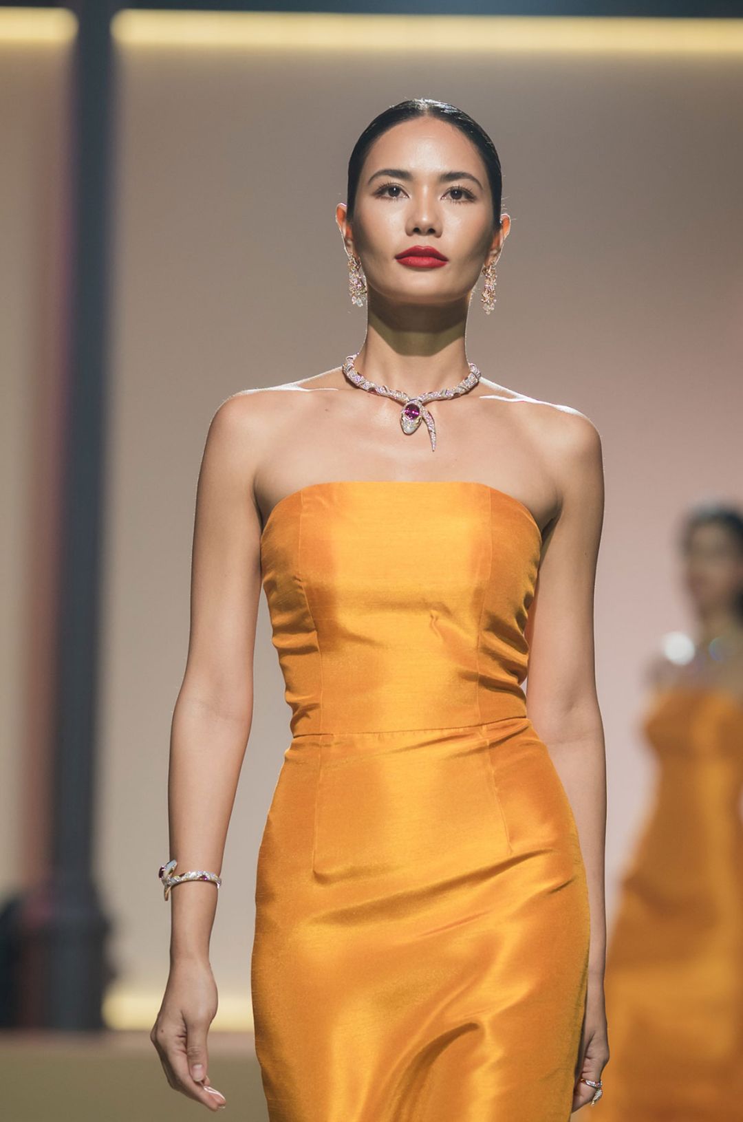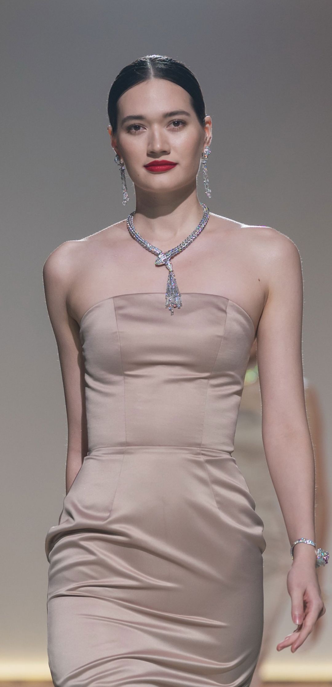 สำหรับมาสเตอร์พีซไฮไลต์โดดเด่นของงานเป็นมรดกแห่งงานหัตถศิลป์ ความประณีตวิจิตรอันเป็นไอคอนิกของช่างอัญมณีแห่งโรมัน อาทิ สร้อยคอ ไฮจิวเวลรี วัน ออฟ อะ ไคนด์ (One Of A Kind High Jewelry) ที่สวมใส่โดย ใหม่-ดาวิกา โฮร์เน่ Friend of The Houseบุลการี เซ้าท์เอเชีย-แปซิฟิค เป็นสร้อยคอแพลทินัมประดับด้วยสปิเนลทาจิกิสถานเจียระไนทรงคุชชัน หนัก 131.21 กะรัต พร้อมทั้งเพชรเจียระไนทรงสี่เหลี่ยมมรกต เช่นเดียวกับความงดงามของ สร้อยคอ ไฮจิวเวลรี วัน ออฟ อะ ไคนด์ เซอร์เพนติ (One Of A Kind High Jewelry Serpenti) ในตัวเรือนพิงก์โกลด์ ตกแต่งด้วยเปลือกหอยมุก พร้อมทั้งสปิเนลเจียระไนเป็นรูปไข่ (oval) หนัก 16.62 กะรัต และ สร้อยคอบุลการี ครีเอชั่น ไฮจิวเวลรี (Bulgari Creation High Jewelry) ในตัวเรือนพิงก์โกลด์ ประดับตกแต่งด้วยเปลือกหอยมุกและคาลซิโดนีสีเขียว