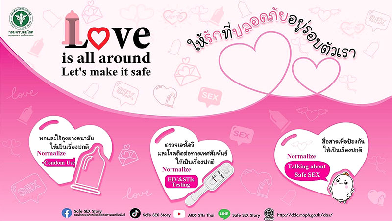 นายแพทย์ธงชัย กีรติหัตถยากร รักษาราชการแทนอธิบดี กล่าวว่า ที่ผ่านมากรมควบคุมโรค ได้ร่วมกับภาคีเครือข่าย ส่งเสริมให้วัยรุ่นและเยาวชน พกและใช้ถุงยางอนามัยทุกครั้งที่มีเพศสัมพันธ์กับทุกคน ทุกช่องทาง จะช่วยป้องกันทั้งการติดเชื้อเอชไอวี โรคติดต่อทางเพศสัมพันธ์ รวมถึงการตั้งครรภ์ที่ไม่พร้อมอีกด้วย ประชาชนสามารถรับถุงยางอนามัยได้ฟรี ที่หน่วยบริการสุขภาพของรัฐ และภาคประชาสังคมทั่วประเทศ พร้อมร่วมกับเครือข่ายเยาวชน จัดกิจกรรมรณรงค์ สร้างความรู้ความเข้าใจ และชวนเพื่อนใช้ถุงยางอนามัยให้เป็นเรื่องปกติทุกครั้งที่มีเพศสัมพันธ์ผ่านสื่อสังคมออนไลน์ นอกจากนี้ ยังส่งเสริมให้วัยรุ่นและเยาวชนเข้าถึงการตรวจคัดกรองเอชไอวีและซิฟิลิส โดยสนับสนุนชุดตรวจคัดกรองเอชไอวีและซิฟิลิสแบบรู้ผลเร็วภายใน 20 นาที ให้กับ 53 จังหวัด ในปี 2565และขยายความครอบคลุมทั้ง 77 จังหวัดทั่วประเทศ ในปี 2566 ทำให้เกิดบริการตรวจเชิงรุกในชุมชน และสถานบริการสุขภาพอย่างทั่วถึง หากพบการติดเชื้อจะได้รับการดูแลรักษาโดยเร็ว