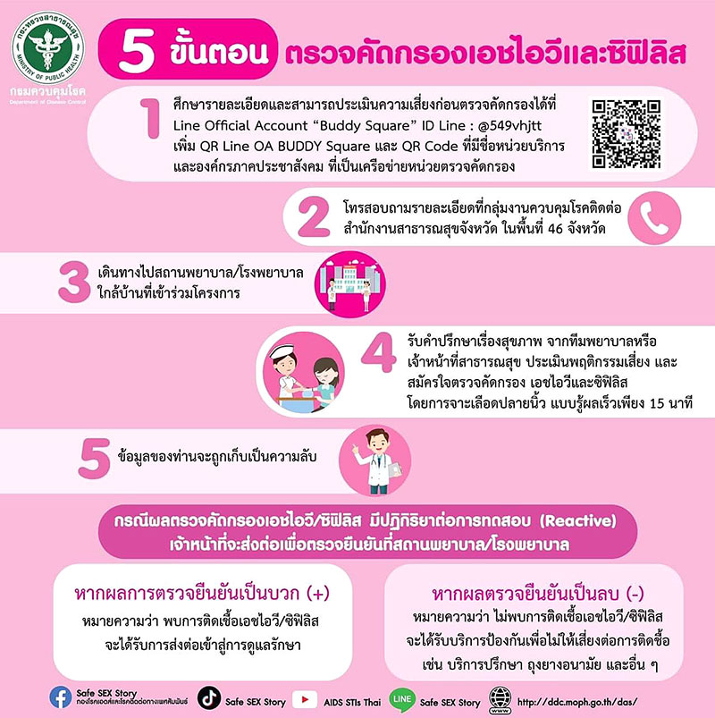ผู้สนใจสามารถค้นหาข้อมูลได้ที่ https://buddystation.ddc.moph.go.th/ facebook fanpage: buddystation หรือสอบถามสายด่วนกรมควบคุมโรค 1422 และกองโรคเอดส์และโรคติดต่อทางเพศสัมพันธ์ 02-5903217