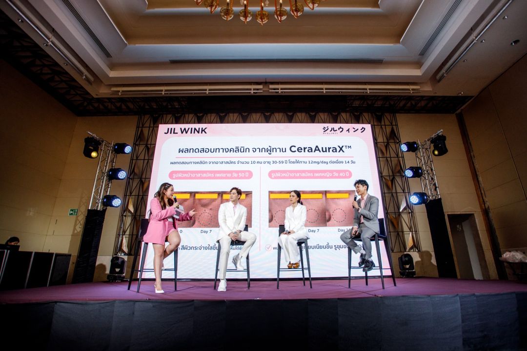 สำหรับผลิตภัณฑ์เสริมอาหาร JIL WINK ดับเบิ้ลแคปซูล (DOUBLE CAPSULES Technology) ที่รวมสารสกัดในรูปแบบผง และน้ำมันไว้ในที่เดียวช่วยคงคุณค่าสารสกัดและช่วยให้ดูดซึมได้ดียิ่งขึ้น มีสารสกัดสุดพรีเมียมเพื่อผิวสุขภาพดี โดยมี CeraAuraX™ (เซร่า ออร่า เอ็กซ์ ) สารสกัดจากข้าวญี่ปุ่น 6 มิลลิกรัมเต็มโดสตามงานวิจัย