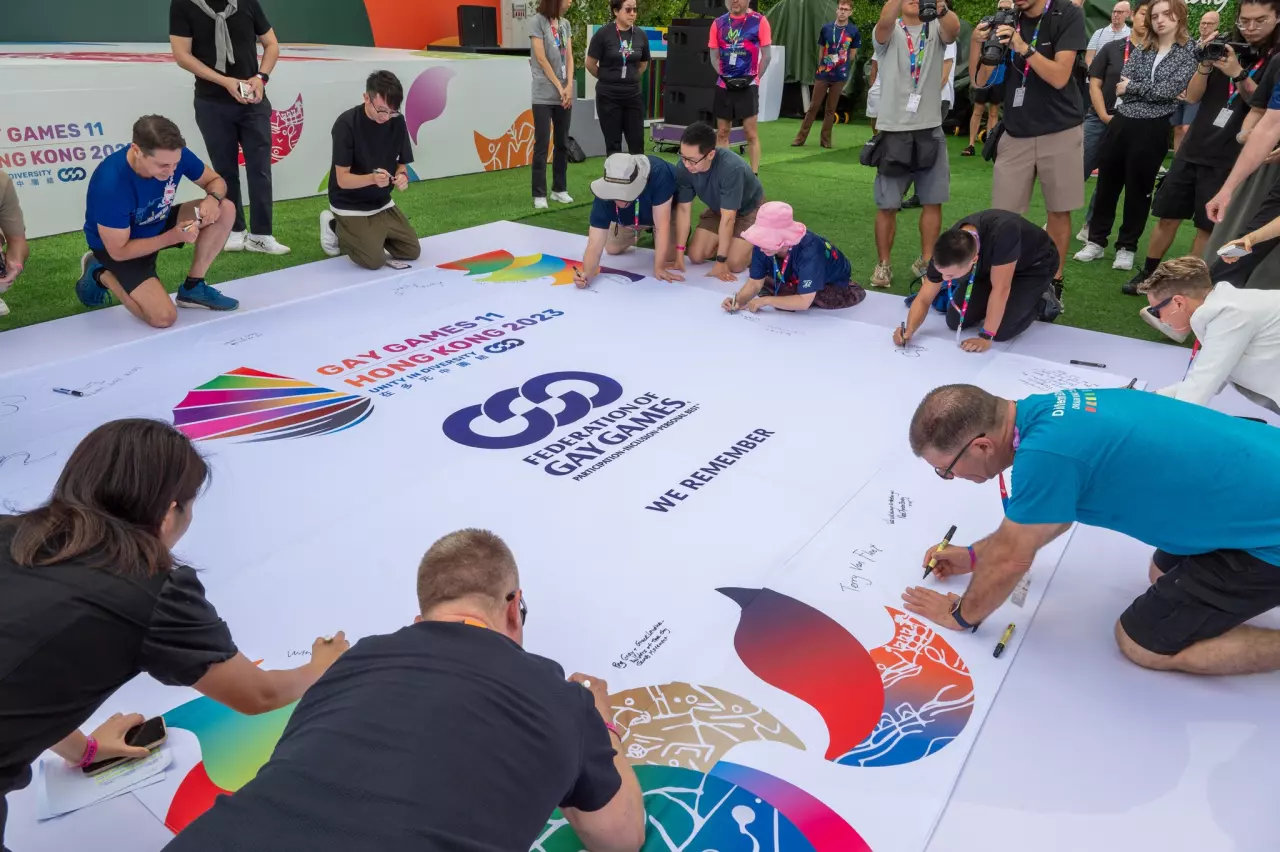 การเต้นดิสโก้และการเต้นรำ เป็นหนึ่งในกิจกรรมในพิธีปิดการแข่งขันเกย์เกมส์ (Gay Games) ครั้งที่ 11 ที่จัดขึ้นในฮ่องกง เมื่อวันเสาร์ (11 พ.ย.) ที่ผ่านมา โดยผู้เข้าร่วมการแข่งขันและบรรดาอาสาสมัครต่างร่วมเฉลิมฉลองการสิ้นสุดการแข่งขันกีฬาที่ยาวนานตลอดสัปดาห์ ซึ่งมีการแข่งขันประเภทต่างๆ เช่น เรือมังกร และแม้แต่การแข่งขันไพ่นกกระจอก และท่ามกลางความยินดีนั้น ก็ทำให้ผู้จัดงานรู้สึกโล่งใจเช่นกัน