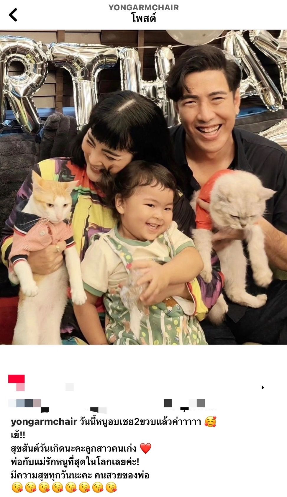 โดยคุณพ่อโย่งได้โพสต์อวยพรลูกสาวพรั่งพรูความรักออกมารัวๆ ว่า “วันนี้หนูอบเชย2ขวบแล้วค่าาาาา เย้!!สุขสันต์วันเกิดนะคะลูกสาวคนเก่งพ่อกับแม่รักหนูที่สุดในโลกเลยค่ะมีความสุขทุกวันนะคะ คนสวยของพ่อ #happybirthday#โอ้เอยเจ้าอบเชย#2ขวบแย้ว#ได้แม่มาจ้ะhttps://www.instagram.com/p/CzGjR6ESVhs/?igshid=Y2NkYjk0MDhjYg==