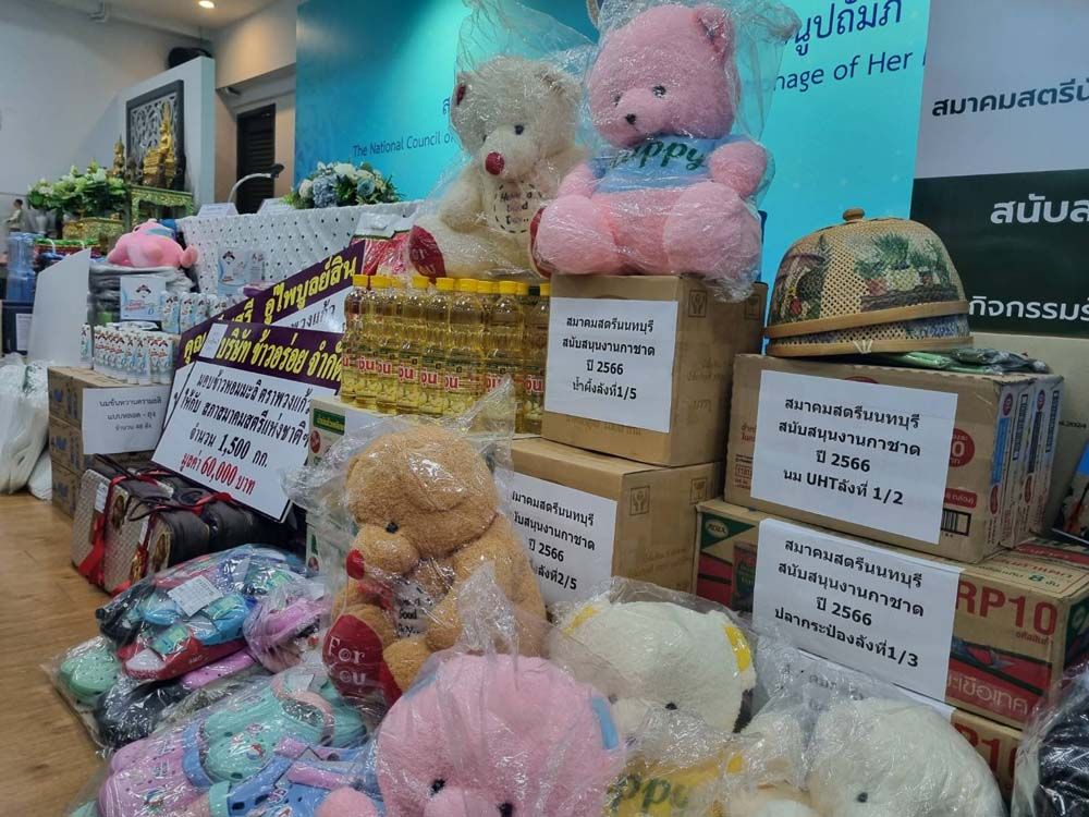 สภาสมาคมสตรีแห่งชาติในพระบรมราชินูปถัมภ์ นำโดย กัญญาประจวบเหมาะ ประธานสภาสมาคมสตรีแห่งชาติฯแถลงข่าวจัดงาน “วันรวมน้ำใจ สภาสมาคมสตรีแห่งชาติฯช่วยกาชาด ประจำปี 2566” ร่วมกับองค์กรสมาชิก และภาคีเครือข่ายเพื่อรับบริจาคสิ่งของนำไปร่วมออกร้านงานกาชาด ประจำปี 2566 ภายใต้แนวคิด “งานกาชาด 100 ปีรื่นรมย์สุขฤดี ณ ที่แห่งการให้ #Red Cross Fair CenturyOfCharity” ระหว่างวันที่ 8-18 ธันวาคม 2566ณ บริเวณสวนลุมพินี โซน 6 (ประตู 1 ถนนวิทยุ) เพื่อหารายได้โดยเสด็จพระราชกุศลบำรุงสภากาชาดไทย โดยมีดร.สุฑาทิพย์ วาทีทิพย์ เลขาธิการ สมาคมสตรีแห่งชาติฯ ประธานฝ่ายจัดจำหน่ายสลากบำรุงสภากาชาดไทย และ เบญจมาศ รุจิรวงศ์ ประธานสมาชิกสมทบสภาสมาคมสตรีแห่งชาติฯในฐานะประธานร้านเศรษฐกิจสภาสมาคมสตรีแห่งชาติฯ ร่วมแถลงข่าวณ อาคารบ้านพระกรุณานิวาสน์ถนนสุโขทัย เขตดุสิต กรุงเทพฯ