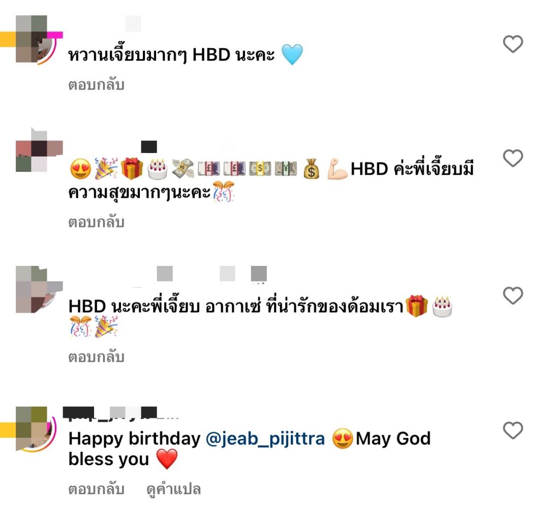 ความหวานไม่แผ่วแม้จะอวยพรกันมายาวนานกว่า 18 ปีแล้วแต่ความหวานพุ่งปรี๊ดขึ้นทุกปีแล้ว งานนี้เหล่าเพื่อนพ้องในวงการ รวมไปถึงแฟนๆ ต่างก็เข้ามาคอมเมนต์อวยพร เจี๊ยบ พิจิตตรา กันอย่างคับคั่งเช่นเดียวกัน