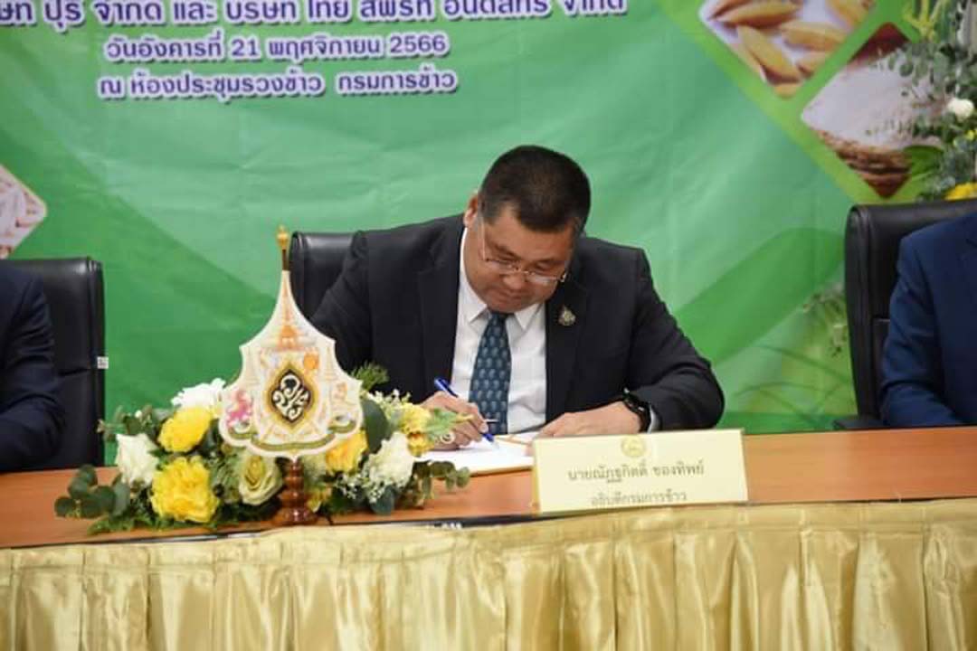 เมื่อวันที่ 21 พฤศจิกายน 2566 กรมการข้าว จัดพิธีลงนามบันทึกข้อตกลงความร่วมมือ (MOU) เรื่อง การวิจัยและพัฒนานวัตกรรมด้านการพัฒนาผลิตภัณฑ์แปรรูปจากข้าว ระหว่าง บริษัท ปุริ จำกัด และบริษัทไทย สพิริท อินดัสทรี จำกัด (TSI) โดยมี นายณัฏฐกิตติ์ ของทิพย์ อธิบดีกรมการข้าว เป็นผู้แทนลงนามบันทึกข้อตกลงในส่วนของกรมการข้าว นายอานนท์ นนทรีย์ รองอธิบดีกรมการข้าว เป็นพยาน และมีนายวรวิทย์ ศิริพากย์ กรรมการบริหาร บริษัท ปุริ จำกัด เป็นผู้แทนลงนามในส่วนของบริษัท ปุริ จำกัด รวมไปถึง นายกณพ ปราถนาดี กรรมการบริหาร บริษัท ไทย สพิริท อินดัสทรี จำกัด เป็นผู้แทนลงนามในส่วนของบริษัท ไทย สพิริท อินดัสทรี จำกัด ณ ห้องประชุมรวงข้าว ชั้น 2 อาคารกรมการข้าว