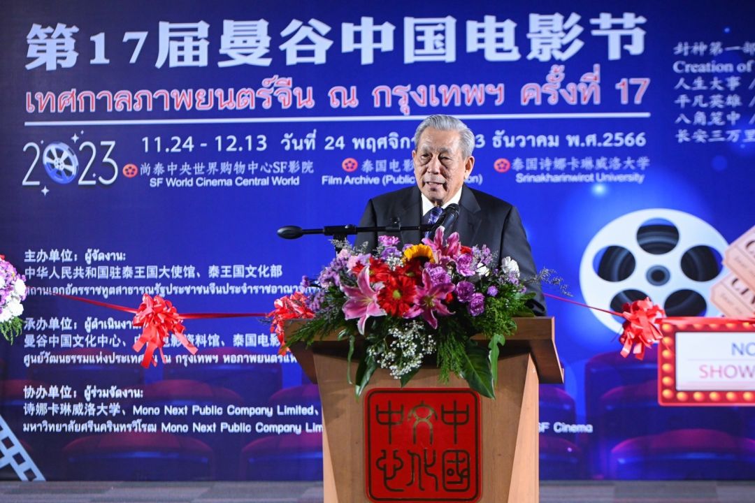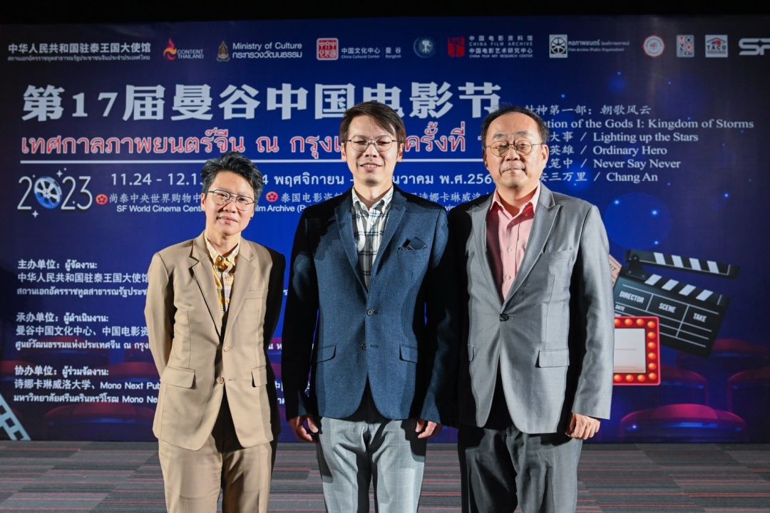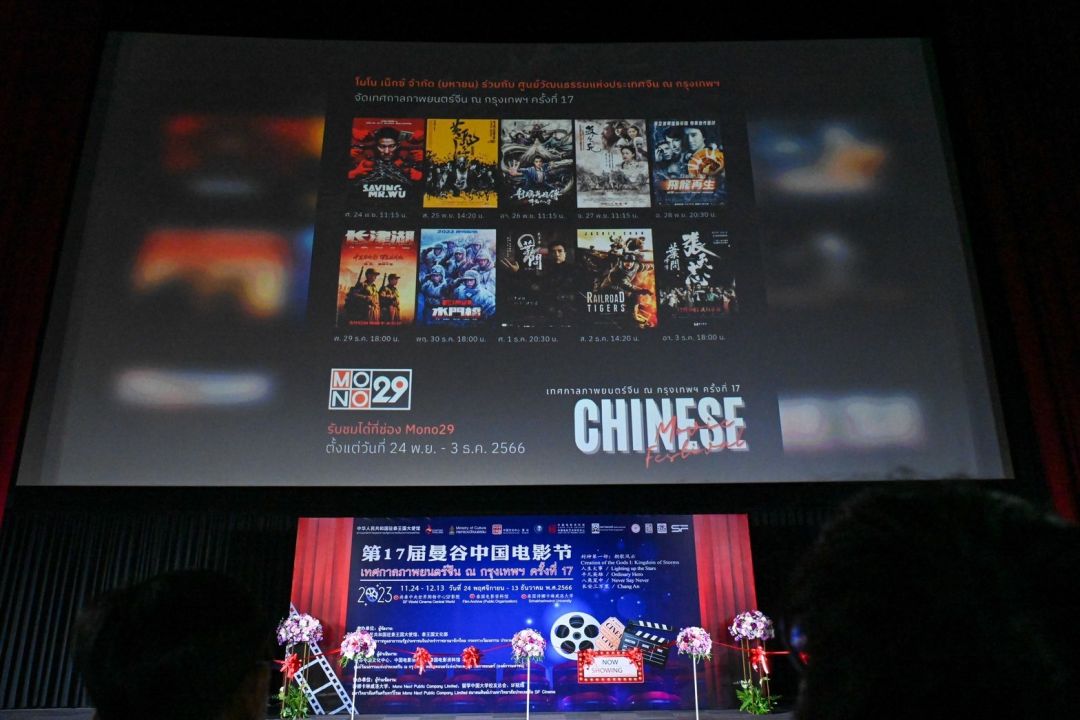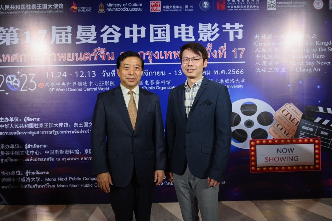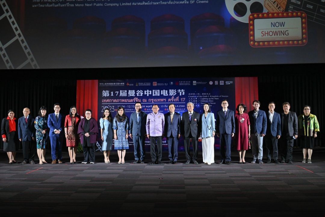 ในวันศุกร์ที่ 24 พฤศจิกายน 2566 เวลา 15.00 น. – 16.00 น. คุณหาน จื้อเฉียง เอกอัครราชทูต สาธารณรัฐประชาชนจีนประจำประเทศไทย, คุณเสริมศักดิ์ พงษ์พานิช รัฐมนตรีว่าการกระทรวงวัฒนธรรม,นายพินิจ จารุสมบัติ อดีตรองนายกรัฐมนตรี และประธานสภาวัฒนธรรมไทย–จีนและส่งเสริมความสัมพันธ์, คุณฉาง อวี้เหมิง อุปทูตฝ่ายวัฒนธรรม สถานทูตจีนประจำประเทศไทย, คุณเขว่ เสี่ยวหัว ผู้อำนวยการศูนย์วัฒนธรรมแห่งประเทศจีน ณ กรุงเทพฯ,คุณปฐมพงศ์ สิรชัยรัตน์ ประธานเจ้าหน้าที่บริหาร บริษัท โมโน เน็กซ์ จำกัด (มหาชน), คุณสุวรรณี ชินเชี่ยวชาญ ประธานเจ้าหน้าที่บริหารสายงานปฏิบัติการ บริษัท เอส เอฟ คอร์ปอเรชั่น จำกัด (มหาชน), คุณชลิตา เอื้อบำรุงจิต ผู้อำนวยการหอภาพยนตร์, รองศาสตราจารย์ ดร.สมชาย สันติวัฒนกุล อธิการบดื่มหาวิทยาลัยศรีนครินทรวิโรฒ พร้อมด้วยคณะผู้บริหารในฐานะพันธมิตรผู้สนับสนุนการประชาสัมพันธ์ต่าง ๆ ของงาน ร่วมในพิธีเปิดงาน “เทศกาลภาพยนตร์จีน ณ กรุงเทพฯ ครั้งที่ 17” ซึ่งจัดดำเนินงานโดยศูนย์วัฒนธรรมแห่งประเทศจีน ณ กรุงเทพฯ, หอภาพยนตร์จีน และหอภาพยนตร์ (องค์การมหาชน)ณ โรงภาพยนตร์ เอส เอฟ เวิลด์ซีเนม่า ศูนย์การค้าเซ็นทรัลเวิลด์กรุงเทพฯ