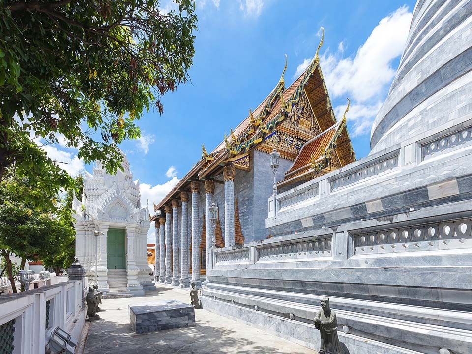 วัดตั้งอยู่บนพื้นที่เพียง 2 ไร่ 2 งาน 98 ตารางวา นับว่ามีขนาดเล็กมาก แต่มีความงดงามยิ่ง มีปูชนียวัตถุสถานสำคัญหลายอย่างด้วยกัน อาทิ ปาสาณเจดีย์ พระเจดีย์ประดับหินอ่อนทั้งองค์ ปราสาทพระจอมที่ประดิษฐานพระบรมรูปปิดทองของรัชกาลที่ 4 ปราสาทพระไตรปิฎก ที่เก็บรักษาพระไตรปิฎกใบลานบรรจุในกล่องไม้ซึ่งทำรูปเล่มอย่างหนังสือ พระวิหารหลวง มีจิตรกรรมฝาผนังภาพพระราชพิธีสิบสองเดือน มี พระพุทธสิหังคปฏิมากรเป็นพระประธานซึ่งได้บรรจุพระบรมอัฐิของรัชกาลที่ 4 ไว้ด้วยนอกจากนี้ยังมี พระพุทธสิหังคปฏิมากรน้อย พระพุทธชินราชน้อย พระพุทธชินศรีน้อย และพระศรีศาสดาน้อย เป็นต้น