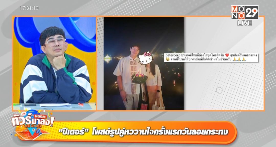 เรื่องเผือกเรื่องเม้าท์ ขอให้เราช่วยคุณ โดยสามพิธีกรตัวตึงอ่านข่าวสุดเลิศพชร์ อานนท์, เป็กกี้-ศรีธัญญา และ ซานิ-นิภาภรณ์ ฐิติธนการในรายการ“ทัวร์มาลง” ทุกวันจันทร์ถึงวันศุกร์ เวลา 17.05 น. ทางช่อง MONO29ล่าสุดในวันอังคารที่ 28พฤศจิกายนนี้ชวนลูกทัวร์ไปตามสืบตามขุด เก็บตกความอินเลิฟของเหล่าคนดังที่ควงคู่หวานใจปริศนาพากันไปลอยกระทงเมื่อคืนที่ผ่านมา ทำเอาชาวเน็ตอิจฉาตาร้อน สำหรับนักแสดงศิลปินสุดหล่อปีเตอร์คอร์ปไดเรนดัลออกมาโพสต์รูปลงไอจี สวมชุดไทยลอยกระทงคู่กับสาวปริศนาโดยใช้สติ๊กเกอร์ปิดบังหน้าสาวข้างกายเอาไว้พร้อมแคปชั่น “ประเพณีไทยก็ต้องใส่ชุดไทยสิครับสุขสันต์วันลอยกระทงจากนี้ไปขอให้ทุกคนมีแต่สิ่งดีดีเข้ามาในชีวิตครับ”พิธีกร เป็กกี้ แสดงความคิดเห็น “เขาจะเก็บเป็นความลับตลอดนะ ทั้ง ๆ ที่ทั้งคู่แลกแหวนกันแล้ว แต่ก็ยังไม่ให้ใครเห็นหน้า”ด้านพิธีกร พชร์ กล่าวว่าถ้าหากแฟนเป็นคนนอกวงการ เขาคงต้องการพื้นที่ส่วนตัว เพราะทั้งคู่คบกันมานานกว่าถึง 2 ปี อีกด้านเป็นมุมของสาวนักแสดงมากฝีมือ บี-น้ำทิพย์จงรัชตวิบูลย์หลังลงโพสต์รูปไอจีขณะที่ตนเองกำลังลอยกระทง พร้อมแคปชั่น “เคยลอยกระทงตอนอายุ10 กว่าขวบแล้วไม่ได้ลอยอีกเลยปีนี้กลับมาลอยกระทงใหม่อีกครั้งและคิดว่าจะไม่ลอยอีกต่อไป”ชาวเน็ตจับจ้องไปที่แฮชแท็คต่อท้าย #แต่ปีนี้มีคนมาลอยกระทงเป็นเพื่อน ทำเอาพระแม่คงคาหวานเจี๊ยบ กระแสคอมเมนต์เป็นเอกฉันท์ว่าเจ้าตัวกำลังอินเลิฟ พิธีกร เป็กกี้แชร์ว่าเธอกำลังคบกับไฮโซหนุ่มนักเรียนนอก ทายาทธุรกิจร้อยล้านอสังหาริมทรัพย์ เจ้าของโรงแรมที่พัทยารวมถึงเป็นผู้นำเข้านาฬิกาแบรนด์หรู “ลองไปสังเกตุดูในไอจีจะรู้เลย เธอเช็คอินโรงแรมนี้บ่อยมาก”นักสืบดาราทำงานด่วนจ้า