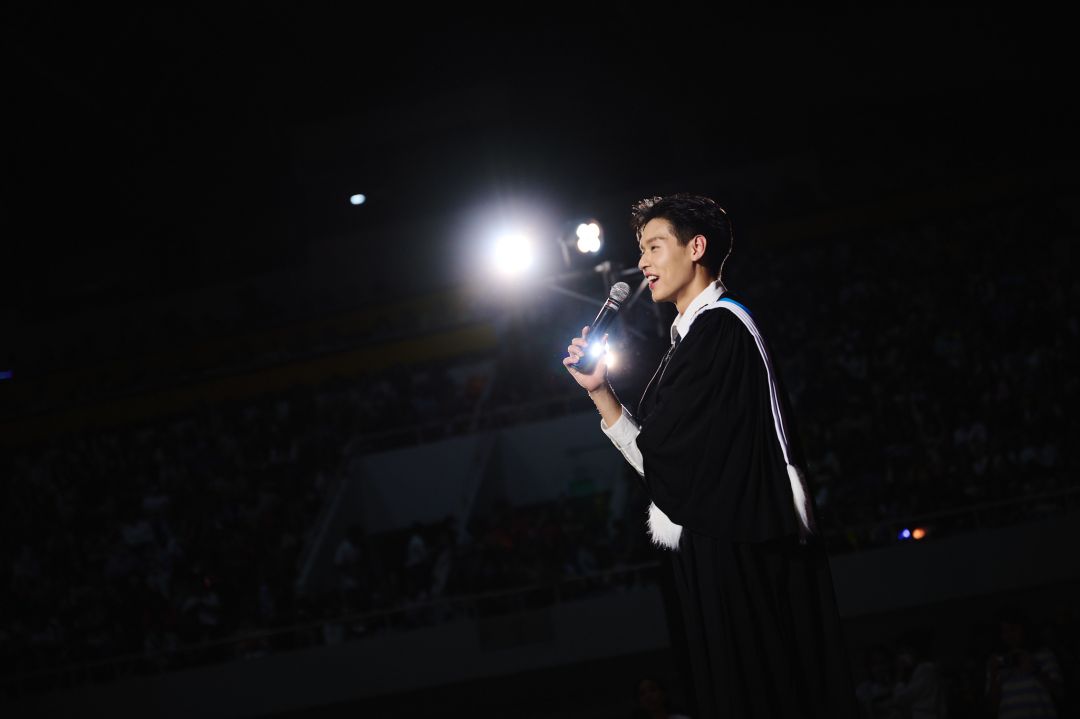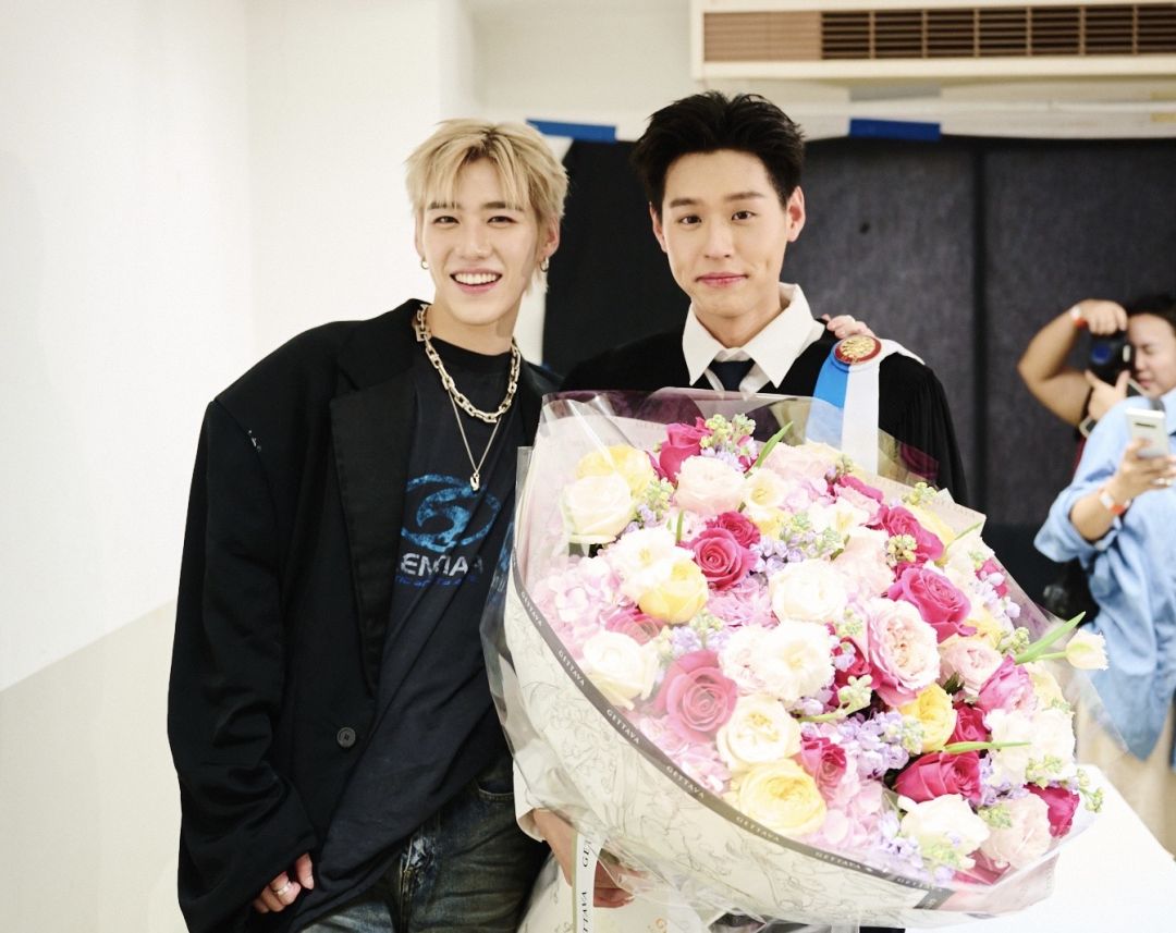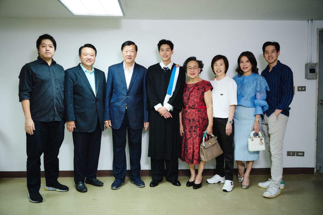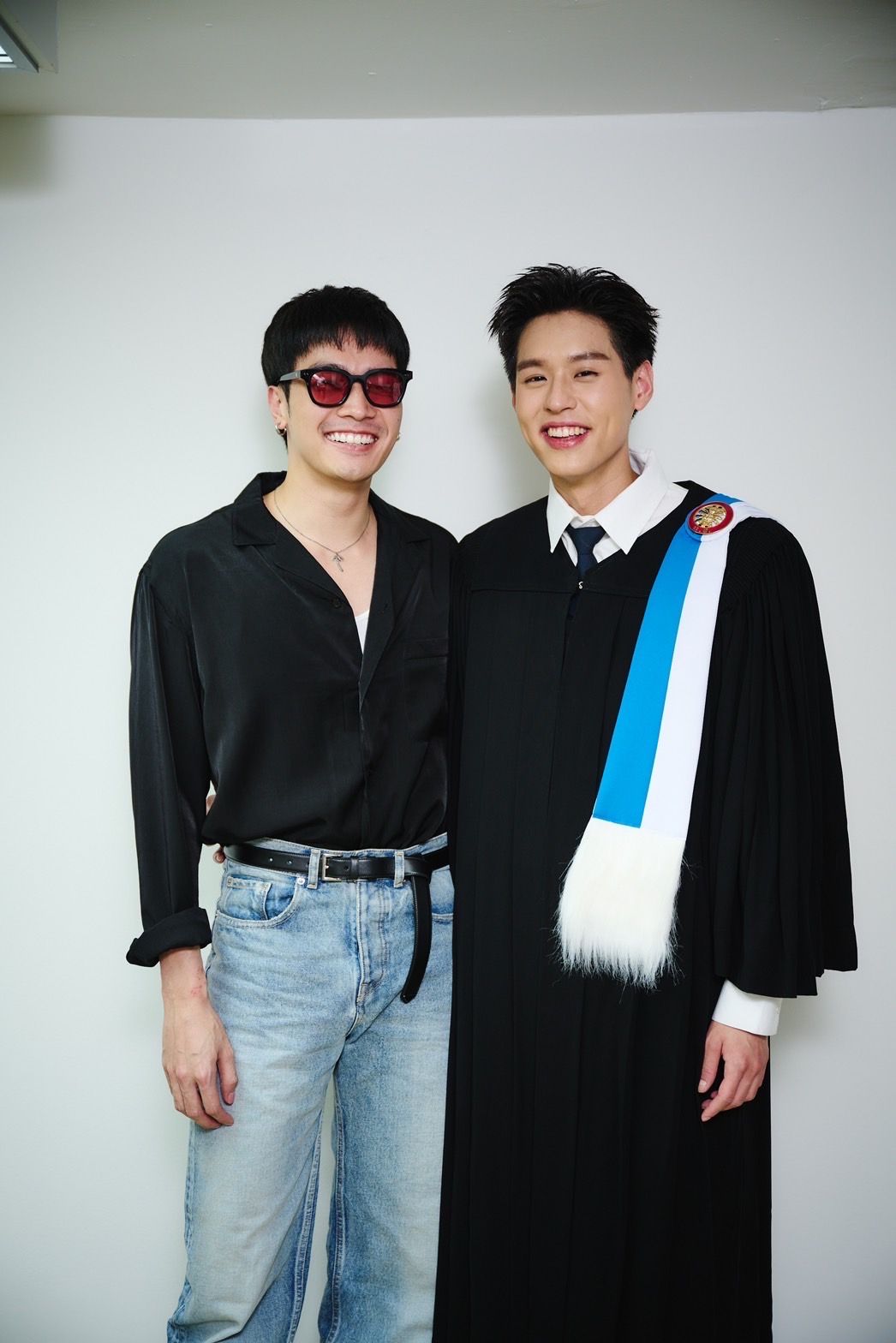 สำหรับการเรียนต่อโท ก็มีการวางแผนไว้บ้าง แต่ว่าเดี๋ยวรอดูจังหวะ น่าจะเน้นการเรียนเกี่ยวกับธุรกิจ เราเริ่มมาทางนี้ แล้วก็ค่อนข้างชอบ ยังมีหลาย ๆ วิชา หลาย ๆ ศาสตร์ที่เราอยากจะเรียนรู้ สำหรับเรื่องเรียนเเละการทำงาน ก็อาจจะดูไปทั้งคู่ เพราะจริง ๆ ก็มีหลาย ๆ อย่างที่เป็นความฝันและชื่นชอบ และต้องรับผิดชอบอยู่ ก็ทำงานไป เเละเรื่องการเรียนก็ดู ๆ ไปก่อนว่าเราสนใจอะไรในอนาคต ถ้าเกิดว่ามีจังหวะและโอกาสที่ดี เราก็อยากจะหาความรู้เพิ่มขึ้น วันนี้พีพีมาแสดงความยินดีด้วย รู้สึกดีใจครับ เพราะว่าพีพีเขาก็เป็นคนหนึ่งที่น่ารักกับผมมาตลอด เหมือนกับทุก ๆ คน เหมือนกับพี่ ๆ แฟน ๆ ทุกคน และครอบครัวผม อย่างที่บอกทุกครั้งที่มีอะไรที่เป็นก้าวใหญ่ ๆ เขาก็จะคอยมาแสดงความยินดี และคอยซัพพอร์ต วันนี้อยากขอบคุณทุกคนจากใจเลยครับ”