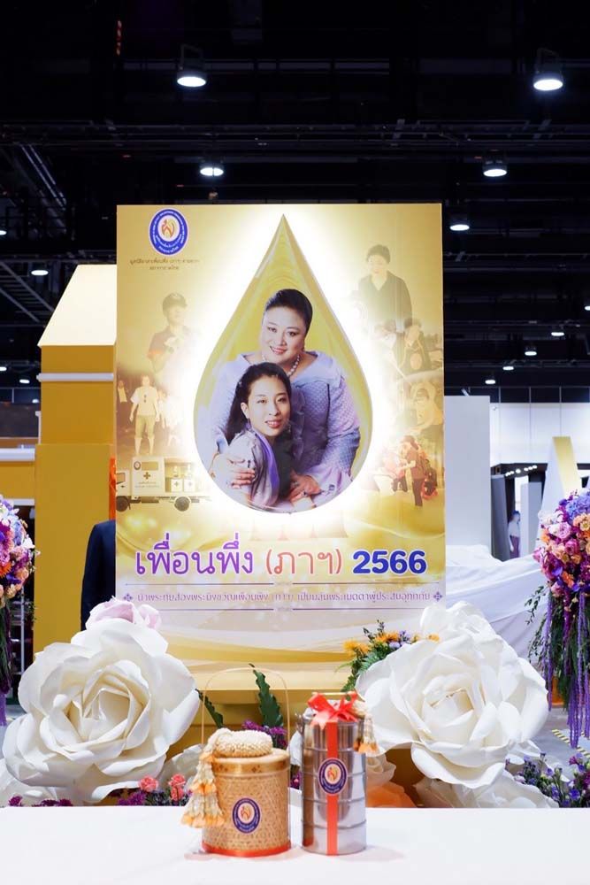 มูลนิธิอาสาเพื่อนพึ่ง (ภา) ยามยาก สภากาชาดไทย ได้จัดงานเพื่อนพึ่ง (ภาฯ) 2566 ขึ้นเป็นปีที่ 12 ระหว่างวันที่ 6-10 ธันวาคม 2566 ณ ศูนย์การประชุมแห่งชาติสิริกิติ์ ฮอลล์ 5 ภายใต้แนวคิด “น้ำพระทัยสองพระมิ่งขวัญเพื่อนพึ่ง (ภาฯ) เปี่ยมล้นพระเมตตาผู้ประสบอุทกภัย” เพื่อเทิดพระเกียรติพระเจ้าวรวงศ์เธอ พระองค์เจ้าโสมสวลี กรมหมื่นสุทธนารีนาถ องค์นายกกิตติมศักดิ์ตลอดชีพ และ สมเด็จพระเจ้าลูกเธอ เจ้าฟ้าพัชรกิติยาภา นเรนทิราเทพยวดี กรมหลวงราชสาริณีสิริพัชร มหาวัชรราชธิดา องค์ประธานกรรมการ ของมูลนิธิอาสาเพื่อนพึ่ง (ภาฯ) ยามยาก สภากาชาดไทย ในการทรงงานช่วยเหลือผู้ประสบอุทกภัยตลอดระยะเวลากว่า 28 ปี โดยถ่ายทอดเรื่องราวการช่วยเหลือผู้ประสบอุทกภัยอย่างครบวงจรและยั่งยืน ตั้งแต่การเฝ้าระวังก่อนเกิดอุทกภัย การบรรเทาทุกข์ระหว่างเกิดอุทกภัย และการฟื้นฟูหลังเกิดอุทกภัย ในรูปแบบ Immersive Exhibition ในแกลลอรี่ทรงหยดน้ำ นอกจากนี้ ยังมีการออกร้านของร้านโครงการส่วนพระองค์ ร้านพระบรมวงศานุวงศ์ ร้านพึ่งพา และ PAfé ร้านค้ากิตติมศักดิ์ ร้านภริยาเหล่าทัพ ร้านภาคีเครือข่าย และร้านดังจากโลกออนไลน์ กว่า 200 ร้าน และความเพลิดเพลินจากกิจกรรมต่างๆ อีกมากมาย รายได้จากการจัดงานนำสมทบทุนมูลนิธิฯ เพื่อช่วยเหลือผู้ประสบอุทกภัย