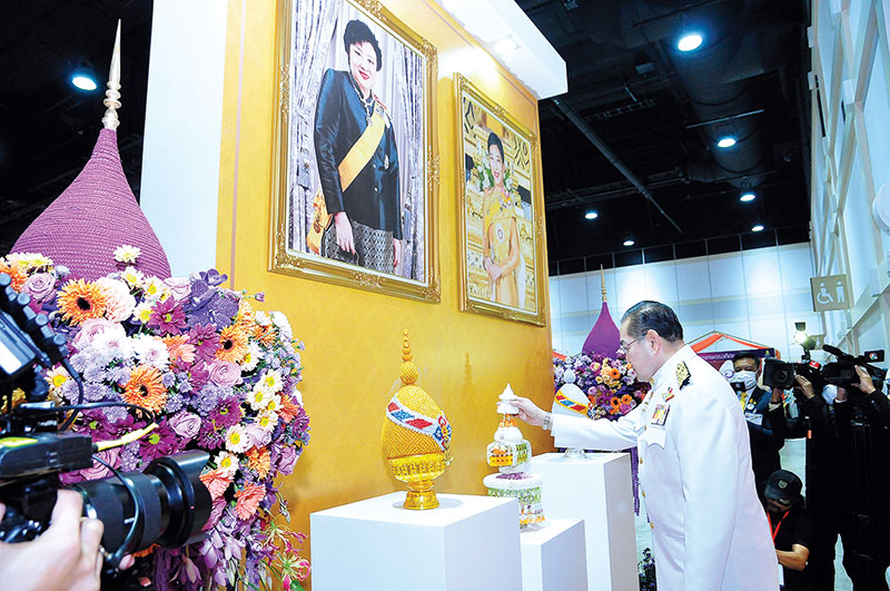 ศ.พิเศษ ดร.สุรเกียรติ์ เสถียรไทย ประธานพิธีเปิดงาน ถวายความเคารพหน้าพระบรมฉายาลักษณ์ พระบาทสมเด็จพระเจ้าอยู่หัว และสมเด็จพระนางเจ้าฯ พระบรมราชินี