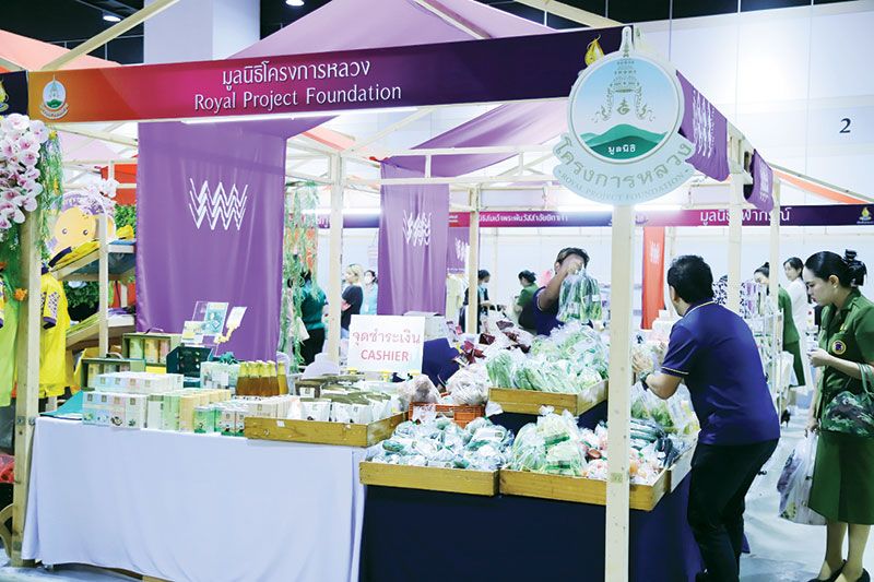 คุณหญิงจันทนี ธนรักษ์, อาภาพร จินรัตน์ และ กรณ์ ณรงค์เดช ที่มาอุดหนุนสินค้าภายในร้านโครงการหลวง