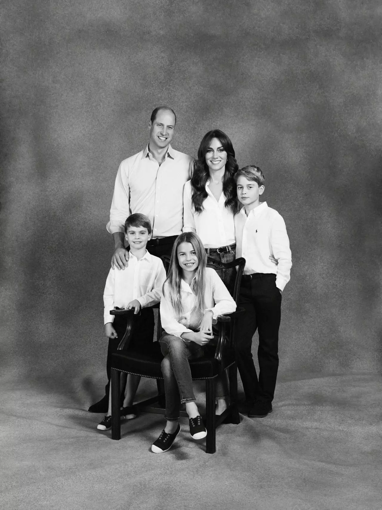 พระรูปครอบครัวของเจ้าชายวิลเลียมที่ทรงเลือกมาเป็นการ์ดอวยพรวันคริสต์มาสปีนี้ เจ้าชายวิลเลียม เจ้าหญิงแคเธอรีน และพระโอรสพระธิดาทั้งสามองค์ เลือกฉลองพระองค์เป็น ‘ทีมเดียวกัน’ ในลุคสบายๆ ดูผ่อนคลายด้วยเสื้อเชิ้ตสีขาว