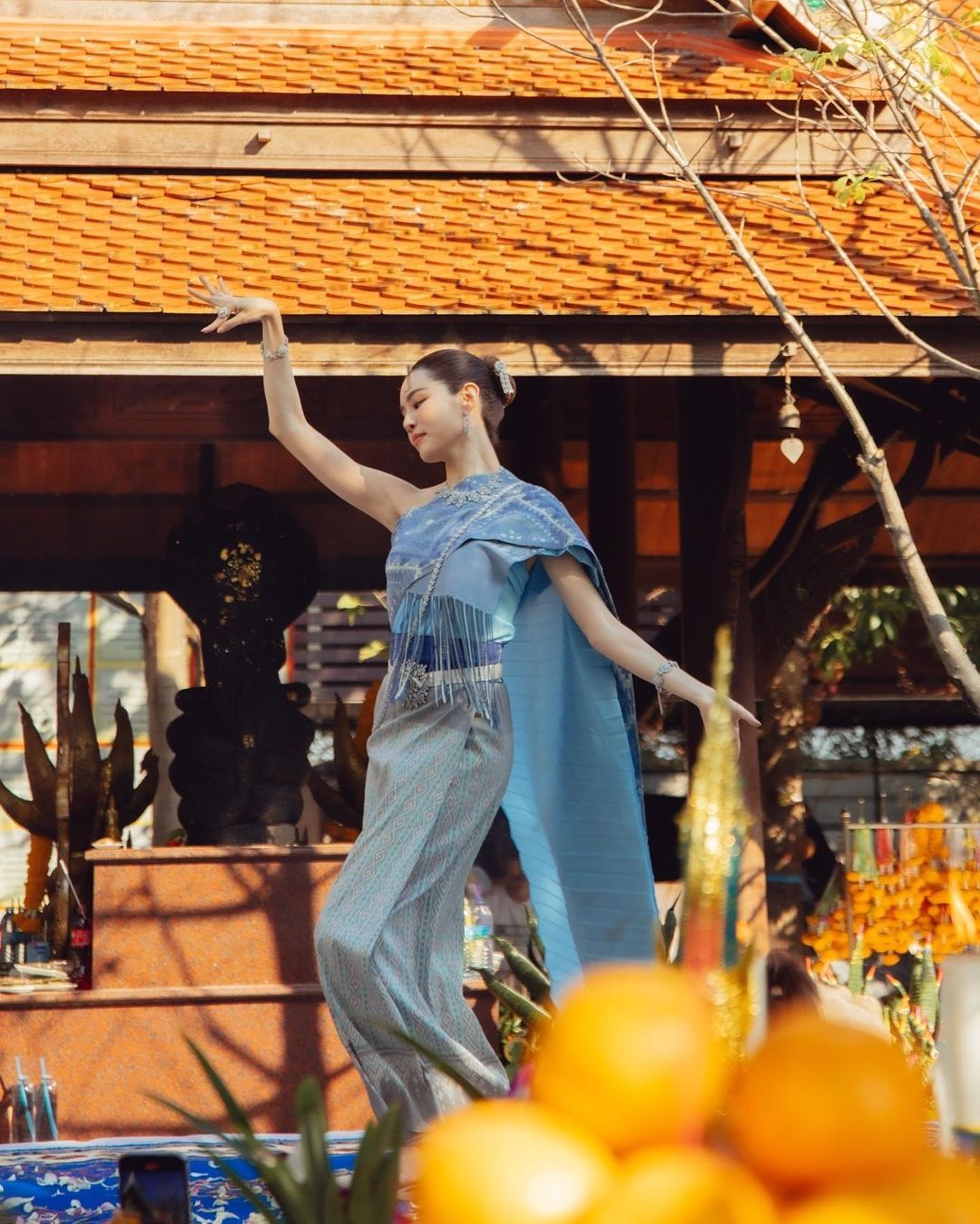 สุดงดงาม! ‘เกรซ กาญจน์เกล้า’รำบวงสรวงบูรณะองค์พญานาค