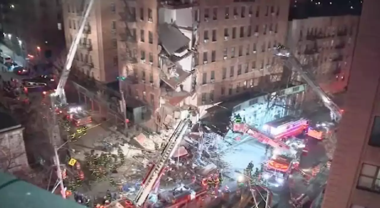 เผยคลิปวินาทีอาคารพังถล่มในนิวยอร์ก กู้ภัยไม่พบคนติดใต้ซากอาคาร (คลิป)