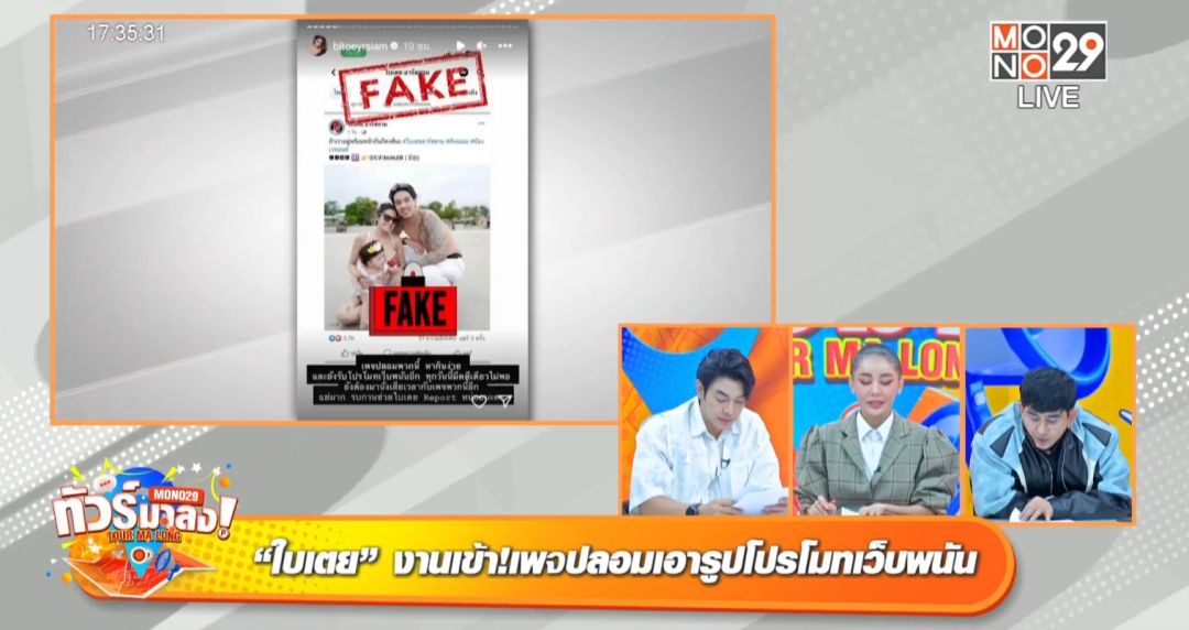 งานเข้าศิลปินสาวแน่นอกใบเตย-สุธีวัน กุญชร หรือ ใบเตย อาร์สยามล่าสุดโดนเพจปลอมแอบอ้างโปรโมทเว็บพนัน หลังคดีเก่ายังไม่ทันหายก็มีเรื่องใหม่เข้ามาให้ปวดหัวอีก งานนี้สาว ใบเตย ต้องออกมาโพสต์ภาพลงไอจีระบุว่าเพจปลอมนี้หากินง่าย และยังรับโปรโมทเว็บพนันอีก“ทุกวันนี้มีคดีเดียวไม่พอ ยังต้องมานั่งเสียเวลากับเพจพวกนี้อีก รบกวนช่วยใบเตยกดรีพอร์ตด้วยนะคะ”พิธีกร พชร์ เผยว่าดาราส่วนใหญ่โดนกันเยอะ ไม่ว่าจะเป็น เพชรจ้า เป็กกี้นิกกี้ แจ็คแฟนฉันหรือไม่นานมานี้อย่างสมปองนครไธสงหรืออดีตพระมหาสมปองที่มาออกรายการทัวร์มาลงก็ยังโดนตัดต่อคลิปไปแอบอ้าง หนุ่ม อาร์ต ออกตัวว่าตนเองก็เคยโดนเหมือนกัน “ของผมโดนช่วงที่ยังไม่มีงาน โดนแอบอ้างว่ามีรายได้มากกว่าแสนบาท มีคนส่งมาให้ผมดูเต็มเลยแต่ผมไม่อยากไปรีโพสต์ กลัวว่าเดียวมันจะยิ่งไปสนับสนุนเครือข่ายเว็บพวกนี้กว่าเดิมครับ”เรื่องนี้อยู่ที่ความคิด เพราะดาราส่วนใหญ่จะไม่ค่อยเข้าไปยุ่งกับเว็บพนันมากเท่าไหร่ ถ้าโดนจับจะโดนยึดทรัพย์ทั้งหมดงานนี้ลูกทัวร์ก็ขอเอาใจช่วยสาว ใบเตย ให้พบฟ้าหลังฝนที่สดใสในทุก ๆ วันนะคะ