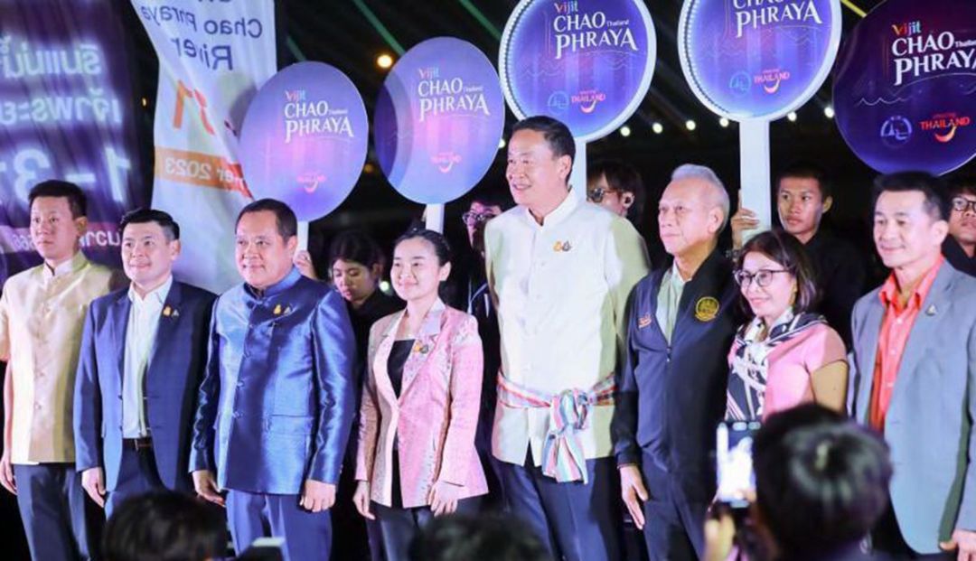 นายเศรษฐา ทวีสิน นายกรัฐมนตรี พร้อมด้วย นางสาวสุดาวรรณ หวังศุภกิจโกศล รัฐมนตรีว่าการกระทรวงการท่องเที่ยวและกีฬา นายสุทินคลังแสง รัฐมนตรีว่าการกระทรวงกลาโหม นายแพทย์ ชลน่าน ศรีแก้วรัฐมนตรีว่าการกระทรวงสาธารณสุข พันตำรวจเอก ทวีสอดส่อง รัฐมนตรีว่าการกระทรวงยุติธรรม นายพิพัฒน์ รัชกิจประการ รัฐมนตรีว่าการกระทรวงแรงงาน นางสาวพิมพ์ภัทรา วิชัยกุล รัฐมนตรีว่าการกระทรวงอุตสาหกรรม นายจักรพงษ์ แสงมณี รัฐมนตรีช่วยว่าการกระทรวงการต่างประเทศนายชัชชาติ สิทธิพันธุ์ ผู้ว่าราชการกรุงเทพมหานคร นางสาวฐาปนีย์ เกียรติไพบูลย์ ผู้ว่าการการท่องเที่ยวแห่งประเทศไทย (ททท.) และนางชฎาทิพ จูตระกูล กรรมการยุทธศาสตร์ซอฟต์พาวเวอร์แห่งชาติ และประธานเจ้าหน้าที่บริหารกลุ่ม บริษัท สยามพิวรรธน์ จำกัด ร่วมชมปรากฏการณ์แห่งแสง สี ริมแม่น้ำเจ้าพระยาสุดยิ่งใหญ่กับงาน “VIJIT CHAO PHRAYA 2023” ตามเส้นทางอัตลักษณ์ ไอคอนสยาม-สะพานพระราม 8 สะท้อนความหลากหลายทางวัฒนธรรมที่งดงามกับจุดแลนด์มาร์คของประเทศไทยเพื่อกระตุ้นการเดินทางท่องเที่ยวส่งท้ายปี 2566