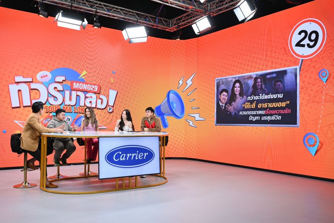 หวานชื่นอบอวลกลิ่นความรักในรายการ “ทัวร์มาลง” ทุกวันจันทร์ถึงวันศุกร์ เวลา 17.05 น. ทางช่อง MONO29ในวันพฤหัสบดีที่ 21 ธันวาคมนี้โดยสามพิธีกรปากซุกซนพชร์-อานนท์ ,ปุ้มปุ้ย-พรรณทิพา อรุณวัฒนชัย และเพชรจ้า-วิเชียร กุศลมโนมัย เอาใจแฟนคลับดาวตลกแห่งยุคอย่าง คุณเจริญพร อ่อนละม้ายหรือ โก๊ะตี๋-อารามบอยนักแสดงอารมณ์ดีชื่อดังที่ควงภรรยาข้าวใหม่ปลามันคุณกวาง-สุภัคจรุตานันท์หลังผ่านงานแต่งมาได้เพียง 4 วันก็ขอมานั่งเม้าท์นั่งหยอดกันสด ๆ ในรายการทัวร์มาลง พิธีกร พชร์ ผู้กำกับฯ คู่ซี้ยิงคำถามแซวทันทีหลังจากเข้าเรือนหอได้พักได้นอนบ้างมั้ย โก๊ะตี๋ ยอมรับแบบเสียงแข็งว่าไม่ได้นอนด้วยกันเลย “นอนบ้านใครบ้านมันตลอด ไม่ได้โหมหนักอะไรเลย”พิธีกร เพชรจ้า ยิงคำถามที่หลายคนสงสัย“อ่าวหลังงานแต่งตกดึกไม่ได้มีเวลาสวีทกันเลยเหรอ”โดยตัว โก๊ะตี๋ เองให้สัมภาษณ์ว่าเจ้าสาวตื่นตีสี่ครึ่งแต่งหน้าแต่งตัว เจ้าบ่าวตื่นตอนหกโมงเช้าแต่งหน้าเจ้าบ่าว ตั้งขบวนแห่ขันหมาก พิธียกน้ำชา ส่งตัว สัมภาษณ์นักข่าว จัดงานรอบค่ำ “วันงานเหนื่อยมากเราไม่ได้พักเลย เชื่อมั้ยครับ กวางถอดแค่ชุดเจ้าสาว แล้วก็ปักหัวนอนไปเลย ขนตายังอยู่เลยครับ ส่วนผมชุดเจ้าบ่าวก็ไม่ได้ถอดนอนไปอย่างนั้นเลย แล้วห้องหอนอนกัน 5 คน อาจารย์เพชร อาจารย์เอ็ม จ็อบหลานชาย ถามหน่อยเอาเวลาที่ไหนไปฟีเจอริ่งกันละครับ”