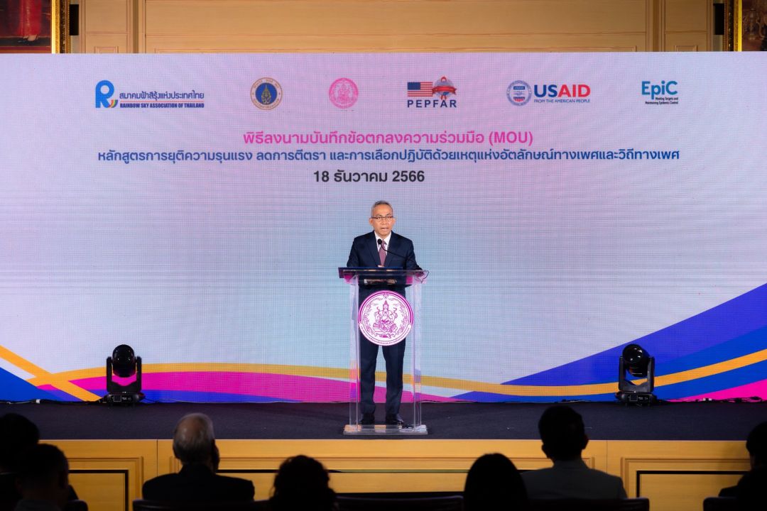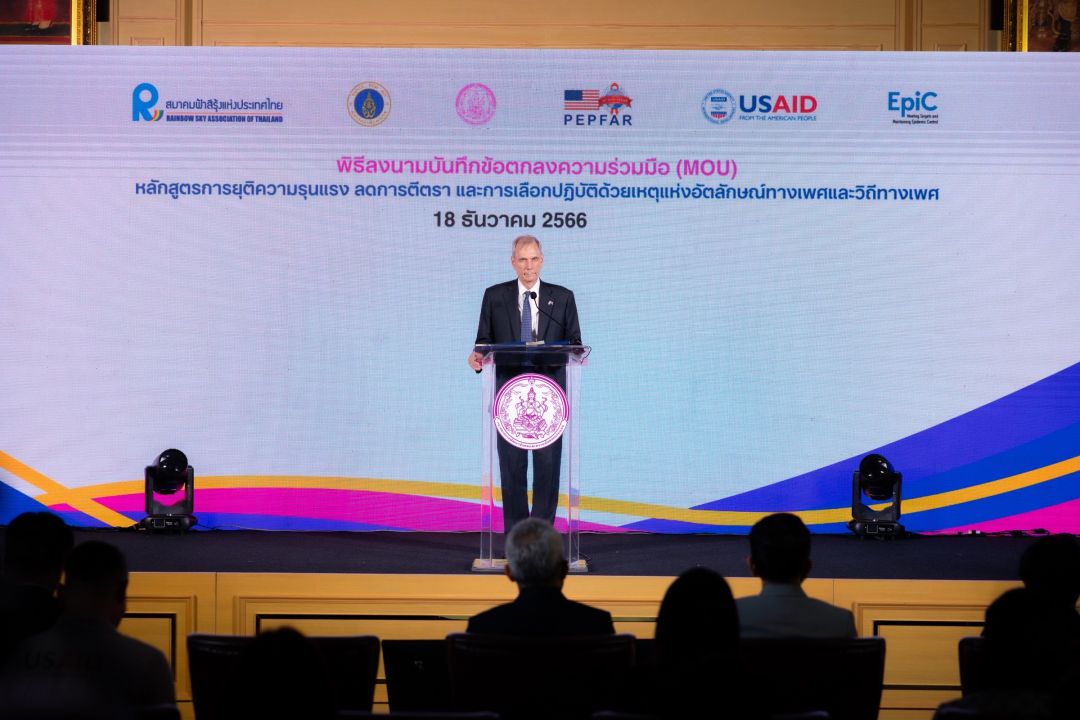 กระทรวงการพัฒนาสังคมและความมั่นคงของมนุษย์, คณะสาธารณสุขศาสตร์ มหาวิทยาลัยมหิดล และสมาคมฟ้าสีรุ้งแห่งประเทศไทย ร่วมลงนามบันทึกข้อตกลงความร่วมมือ“หลักสูตรการยุติความรุนแรง ลดการตีตรา และการเลือกปฏิบัติด้วยเหตุแห่งอัตลักษณ์ทางเพศและวิถีทางเพศ” พิธีนี้เป็นการเริ่มต้นอย่างเป็นทางการของความคิดริเริ่มที่ก้าวล้ำที่มุ่งยุติความรุนแรงและลดการตีตราและการเลือกปฏิบัติตามอัตลักษณ์ทางเพศและวิถีทางเพศ โดยมีนายอนุกูล ปีดแก้ว ปลัดกระทรวงการพัฒนาสังคมและความมั่นคงของมนุษย์ เป็นประธาน และเอกอัครราชทูตโรเบิร์ต เอฟ. โกเด็ก เอกอัครราชทูตสหรัฐประจำประเทศไทย พร้อมแขกผู้มีเกียรติจากสหประชาชาติ นายเรโนด์ เมเยอร์ ผู้แทนประจําโครงการพัฒนาแห่งสหประชาชาติ (UNDP) ในประเทศไทย ร่วมแสดงความยินดีอย่างสุดซึ้งในโอกาสนี้