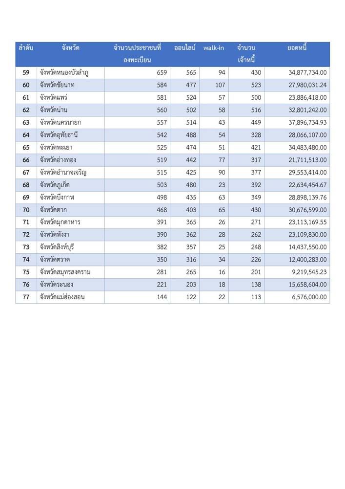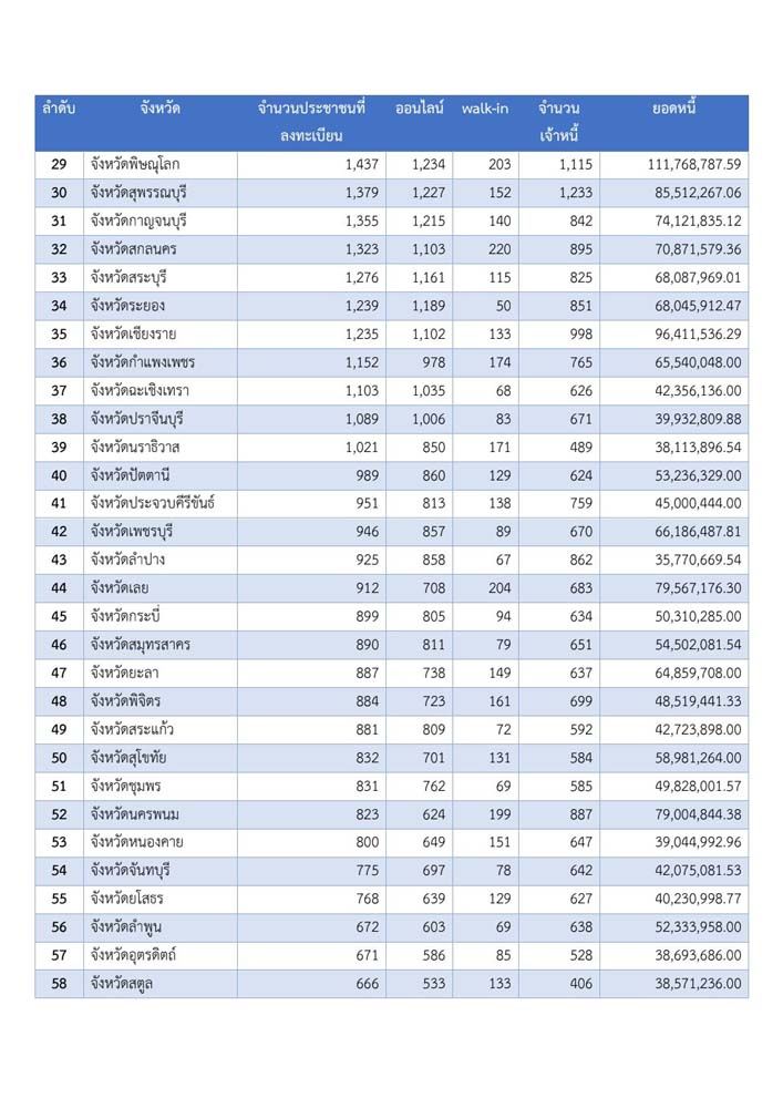 สรุปยอดลงทะเบียน ‘หนี้นอกระบบ’ ครบ 21 วัน มูลหนี้ 6,576 ล้านบาท