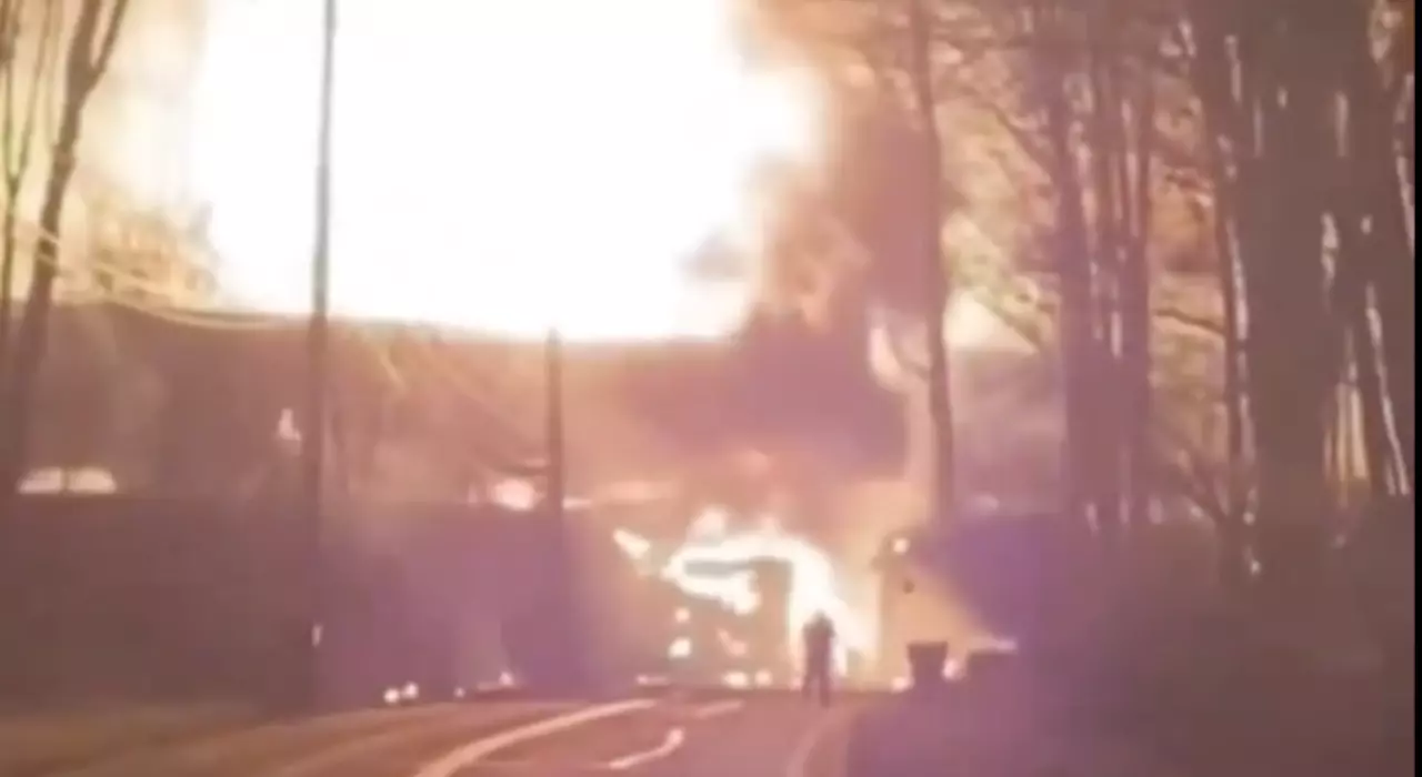 เกิดอุบัติเหตุไม่คาดคิด เมื่อรถบรรทุกสารเคมีโพรเพน พุ่งชนสะพานรางรถไฟในนิวยอร์ก ส่งผลให้เกิดการระเบิดอย่างรุนแรง จนไฟลุกท่วมสูง โดยคนขับถูกไฟคลอกเจ็บสาหัส