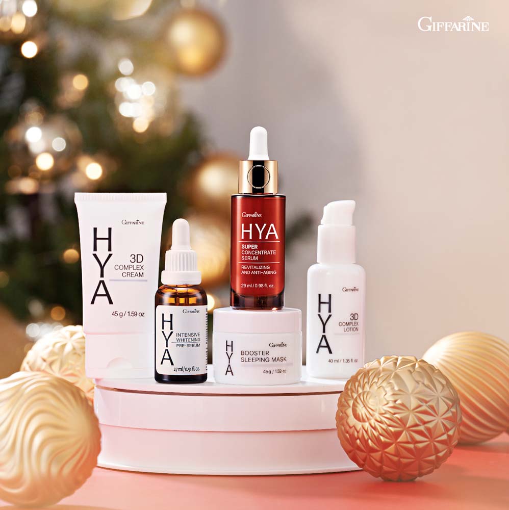 ให้ผิวพร้อมรับการบำรุงต่อเนื่องด้วย GIFFARINE HYA 3D Complex Cream (กิฟฟารีน ไฮยา ทรีดี คอมเพล็กซ์ครีม) ครีมบำรุงผิวหน้าสูตรเข้มข้นให้ความชุ่มชื้นสูง บำรุงผิวให้ตึงกระชับ เหมาะสำหรับผิวแห้ง และ GIFFARINE HYA 3D Complex Lotion (กิฟฟารีน ไฮยา ทรีดี คอมเพล็กซ์ โลชั่น) โลชั่นบำรุงผิวหน้าเนื้อบางเบา ซึมเร็ว ให้ความชุ่มชื้นสูง เหมาะสำหรับผิวมัน-ผิวผสมที่ขาดความชุ่มชื้น ด้วยนวัตกรรมHyaluron 3D Complex ซึ่งมี Hyaluronโมเลกุลขนาดเล็กสายสั้น จากเกาหลี ทำให้ซึมเข้าสู่ผิวได้อย่างล้ำลึก ช่วยให้ริ้วรอยร่องลึกแลดูตื้น ช่วยยกกระชับผิวพร้อมด้วย Hyaluron โมเลกุลขนาดกลางจากเกาหลี และโมเลกุลขนาดใหญ่ จากเยอรมนี ช่วยกักเก็บความชุ่มชื้นให้ผิวอิ่มน้ำยาวนาน ให้ผิวเปล่งปลั่ง อีกทั้ง เสริมความแข็งแรงของผิวด้วย Peptide Complex จากฝรั่งเศส ช่วยลดเลือนริ้วรอย คืนความมีชีวิตชีวาแก่ผิว แลดูอ่อนเยาว์ และผิวแลดูกระจ่างใสเป็นธรรมชาติด้วย Vitamin B3