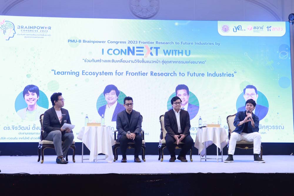 หน่วยบริหารและจัดการทุนด้านการพัฒนากําลังคน และทุนด้านการพัฒนาสถาบันอุดมศึกษา การวิจัย และการสร้างนวัตกรรม (บพค.) สํานักงานสภานโยบายการอุดมศึกษา วิทยาศาสตร์ วิจัย และนวัตกรรมแห่งชาติ (สอวช.) หน่วยงานในกำกับกระทรวงการอุดมศึกษา วิทยาศาสตร์ วิจัยและนวัตกรรม (อว.) จัดงานประชุมวิชาการ “PMU-B Brainpower Congress 2023 : Frontier Research to Future Industries by I conNEXT with U” ภายใต้แนวคิด “ร่วมกันสร้างและขับเคลื่อนงานวิจัยขั้นแนวหน้าสู่อุตสาหกรรมแห่งอนาคต” โดยมีนักวิจัย อาจารย์ นักวิชาการ ผู้เชี่ยวชาญจากภาครัฐ ภาคเอกชน และผู้ที่เกี่ยวข้องกว่า 80 หน่วยงาน ประมาณ 700 คน เข้าร่วมงาน เมื่อกลางเดือนธันวาคม 2566 ณ โรงแรมดุสิตธานี หัวหิน จังหวัดเพชรบุรี