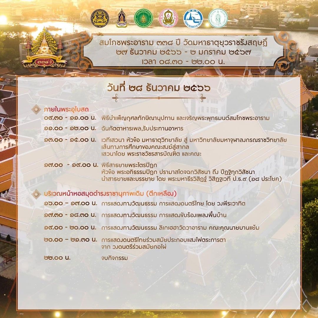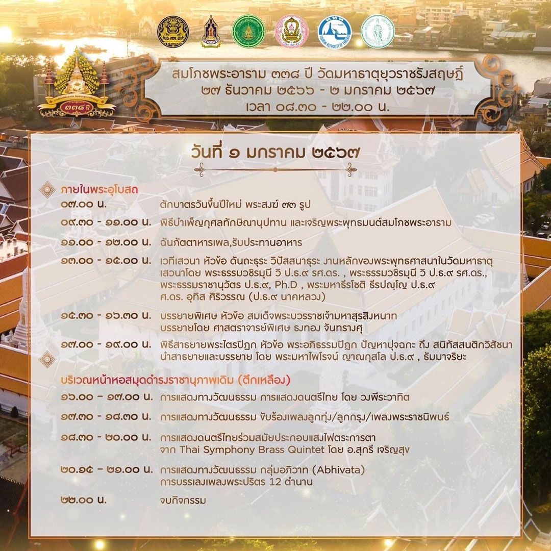เชิญชวนสวมชุดไทยเที่ยวงาน ‘สมโภชพระอาราม 338 ปี’ วัดมหาธาตุยุวราชรังสฤษฎิ์ฯ