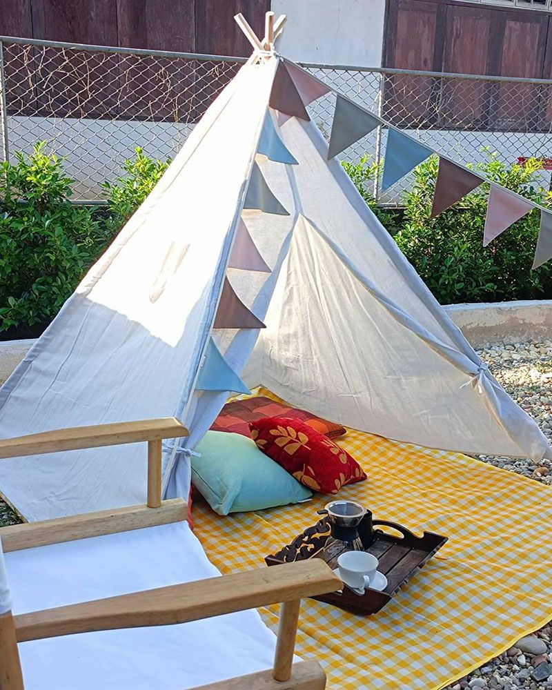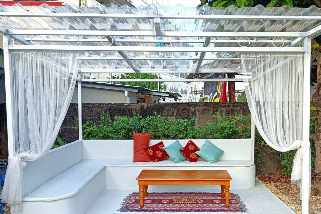 “เราก็เริ่มออกแบบตกแต่งบ้าน น้องชายก็มาช่วยเปลี่ยนระบบไฟระบบน้ำทั้งหมด น้าชายก็ช่วยทำประตูสวิงหน้าบ้าน ทำเก้าอี้นั่งหลังบ้าน ส่วนเราก็ทาสีบ้าน ทาสีรั้วเอง และบริหารจัดการดูแลที่เหลือ ทั้งซื้อวัสดุ อุปกรณ์ เครื่องใช้ต่างๆ ในบ้าน นอกบ้าน ทำลานสวนหลังบ้าน ให้ช่างมาทำรั้วบ้านและศาลาฟ้าใส นั่งได้หลายคน สำหรับสังสรรค์ มีมุมจิบกาแฟหลายๆ มุม เพื่อให้แขกที่มาพักรู้สึกมีความสุข อบอุ่น สะดวก สบาย ปลอดภัย เหมือนบ้านหลังที่ 2 ของผู้มาเยือน”