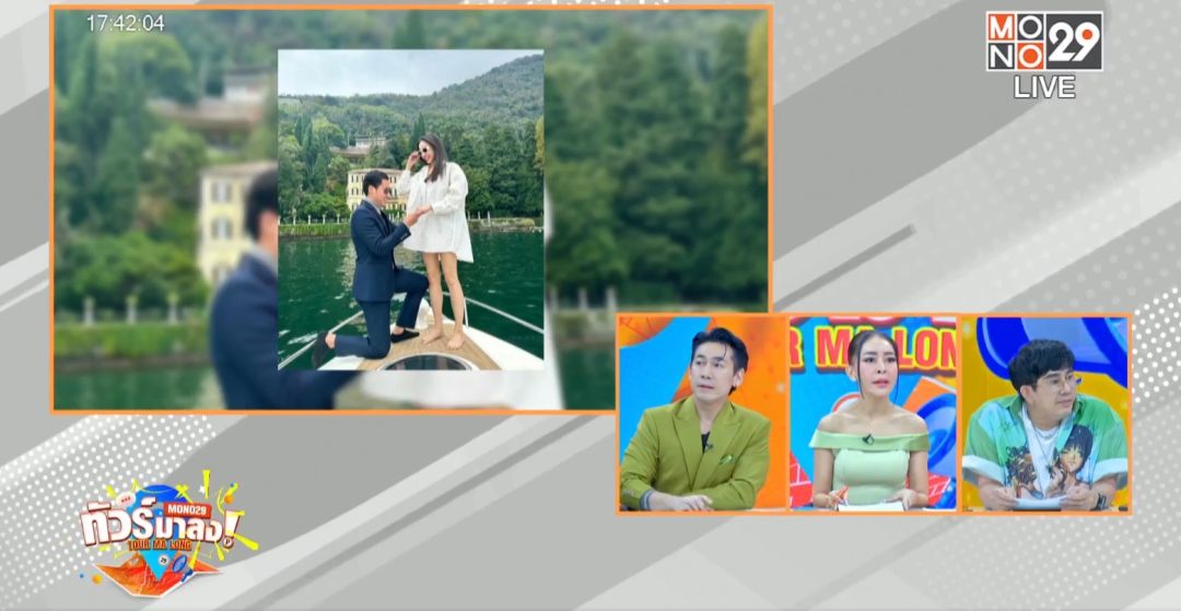 ปีใหม่เม้าท์แรงไม่แปลี่ยนแปลงสำหรับสามพิธีกรจอมเม้าท์ในวงการพชร์-อานนท์, เพชรจ้า-วิเชียร กุศลมโนมัยและเป็กกี้-ศรีธัญญาในรายการ “ทัวร์มาลง” ทุกวันจันทร์ถึงวันศุกร์ เวลา 17.05 น. ทางช่อง MONO29ในวันอังคารที่ 2มกราคมนี้หวานชื่นรับต้นปีสำหรับดาราสาว แพท-ณปภา ตันตระกูลหลังแฟนหนุ่มรุ่นน้องอย่าง พี-ชานนท์ วงศ์งามขำ ทำเซอร์ไพรส์คุกเข่าขอแต่งงานที่ประเทศอิตาลี พร้อมสักขีพยานตัวน้อยอย่าง น้องเรซซิ่ง ท่ามกลางบรรยากาศสุดโรแมนติกหลังคบหาดูใจกันมา2ปีโดยหนุ่มพีได้เผยภาพลงไอจีส่วนตัวโมเมนท์สวมแหวนเพชรเม็ดโตให้สาวแพทพร้อมแคปชั่น18th October 2023 16.06 Italy time The day i will never forget งานนี้ก็มีบรรดาเพื่อนๆในวงการและแฟนคลับเข้ามาแสดงความยินดีและอวยพรให้ทั้งคู่เริ่มต้นชีวิตคู่อย่างราบรื่นและอยู่ดูแลรักกันตลอดไป