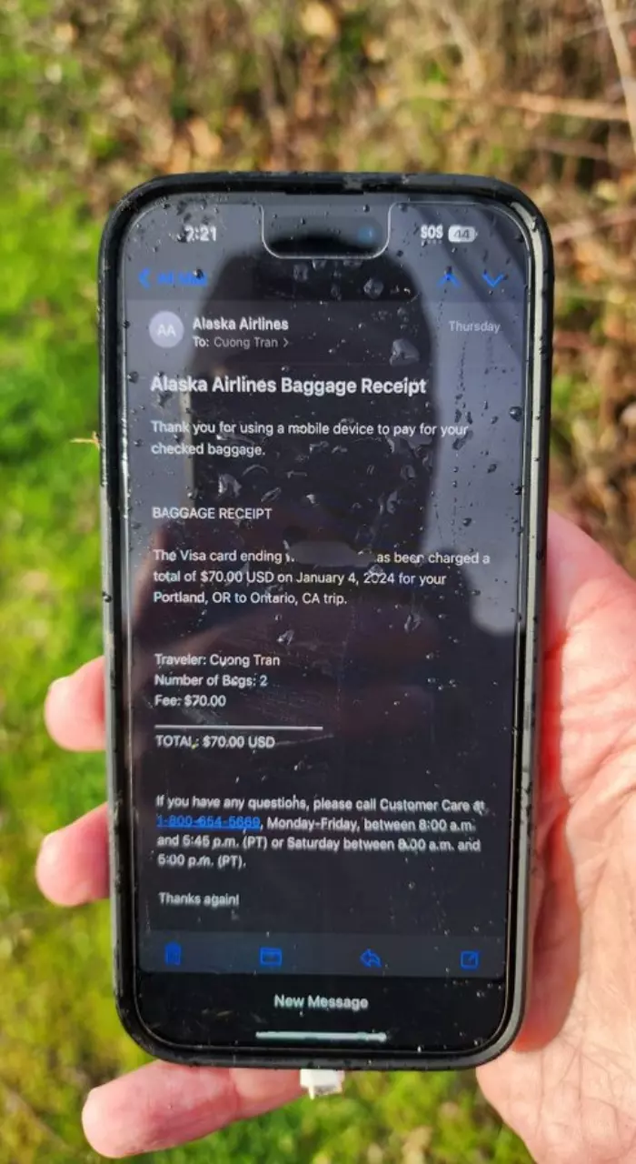 ผู้ใช้สื่อโซเชียล X @SeanSafyre ได้โพสต์ข้อความว่า ได้พบไอโฟนของหนึ่งในผู้โดยสารบนเครื่องบินอะแลสกา แอร์ไลน์ ที่ประสบอุบัติเหตุชิ้นส่วนประตูหลุดกลางอากาศ ตกอยู่ในพงหญ้าข้างทาง แถวพื้นที่ทางภาคตะวันตกเฉียงเหนือของรัฐวอชิงตัน โดยแม้โทรศัพท์ดังกล่าวจะตกลงมาจากความสูงเกือบ 5,000 เมตร แต่กลับยังอยู่ในสภาพสมบูรณ์ ไม่มีร่องรอยความเสียหาย หรือแม้แต่ร่องรอยขูดขีดที่หน้าจอแต่อย่างใด โดยโทรศัพท์ยังอยู่ในโหมดเครื่องบินและเหลือแบตเตอรี่ครึ่งหนึ่ง ขณะที่หน้าจอค้างอยู่ที่หน้าเปิดให้รับกระเป๋าสำหรับผู้โดยสารเที่ยวบิน Alaska Airlines ASA1282 ส่วนด้านล่างของตัวเครื่องยังมีหัวสายชาร์จหักคาอยู่