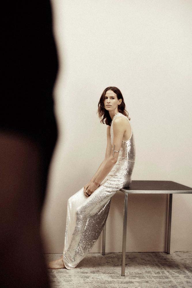 ผิวสัมผัสที่น่าสนใจผสมผสานกับเนื้อผ้าที่ทนทานและคุณภาพเยี่ยม ส่วนใหญ่ผลิตจากวัสดุที่มีความยั่งยืนมากขึ้น ไฮไลต์ได้แก่ ผ้าไหมออร์แกนิกผ้าวูลรีไซเคิล ผ้าวิสโคส Lenzing EcoVero™ และเลื่อมที่ทำจากโพลิเอสเตอร์รีไซเคิล จิลเวลรี่ 3 ชิ้นจากทั้งหมด 4 ชิ้นทำจากอะลูมิเนียมรีไซเคิล