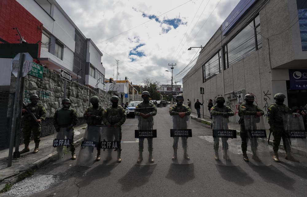 ประธานาธิบดีแดเนียล โนโบอา วัย 36 ปี ที่เพิ่งเข้ารับตำแหน่งเมื่อเดือนพฤศจิกายน 2566 กล่าวว่าเป็นการก่อเหตุรุนแรงตอบโต้ที่รัฐบาลมีแผนจะสร้างเรือนจำมาตรการรักษาความปลอดภัยสูงสำหรับคุมขังหัวหน้าแก๊งอาชญากรรม เขาประกาศสถานการณ์ฉุกเฉินเป็นเวลา 60 วัน เมื่อวันจันทร์ ตามด้วยการประกาศรายชื่อแก๊งอาชญากรรมจำนวนมากให้เป็นกลุ่มก่อการร้ายในวันอังคาร และให้อำนาจกองทัพจัดการกับกลุ่มเหล่านี้ ล่าสุด ตำรวจและทหารเอกวาดอร์สนธิกำลังปฏิบัติการกวาดล้างแก๊งอาชญากรทั่วประเทศเจ้าหน้าที่ได้นำตัวสมาชิกแก๊งอาชญากร14 คน ที่จับกุมได้จากปฏิบัติการหลายครั้งในสัปดาห์ที่ผ่านมา แถลงข่าวนอกจากนี้ ยังสามารถยึดอาวุธได้อีกหลายรายการ