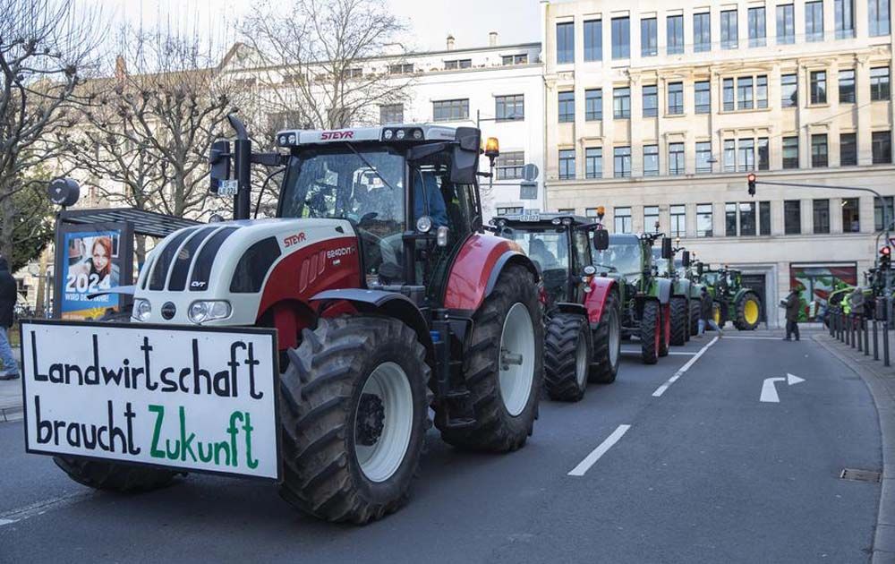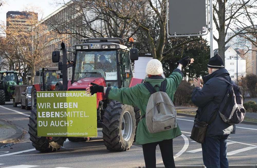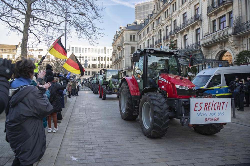 ขบวนรถแทรกเตอร์เข้าร่วมการประท้วงต่อต้านการยกเลิกเงินอุดหนุนทางการเกษตรในกรุงเบอร์ลินและเมืองวีสบาเดินของเยอรมนี โดยตั้งแต่วันจันทร์ที่แล้ว (8 ม.ค.) เกษตรกรในเยอรมนีเริ่มต้นการประท้วง ระยะหนึ่งสัปดาห์โดยมีรถแทรกเตอร์หลายพันคันออกวิ่งบนถนนสายสำคัญจนการจราจรติดขัด