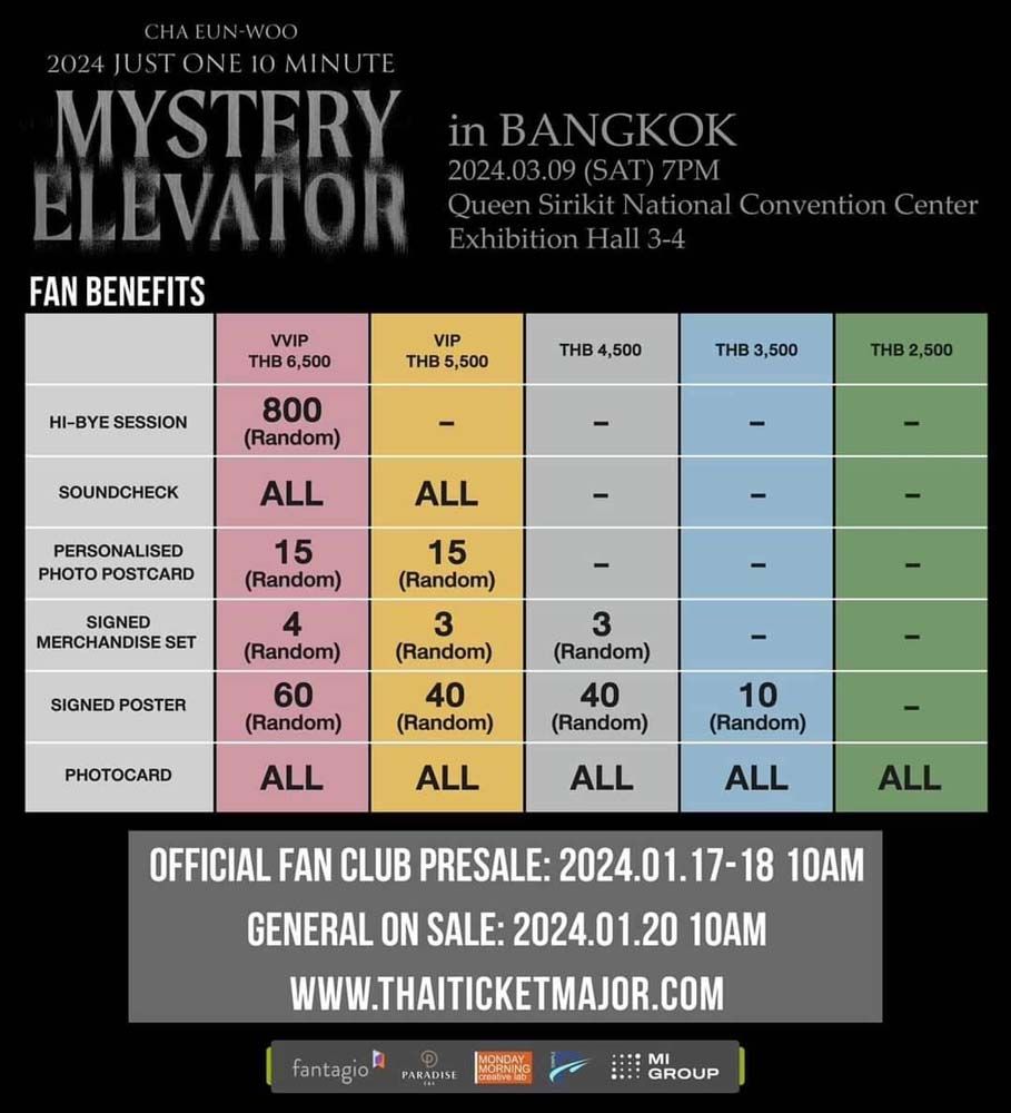 CHA EUN-WOO 2024 Just One 10 Minute [Mystery Elevator] in Bangkok เปิดจำหน่ายบัตรรอบ 2024 CHA EUN-WOO(ASTRO) OFFICIAL FANCLUB Presale