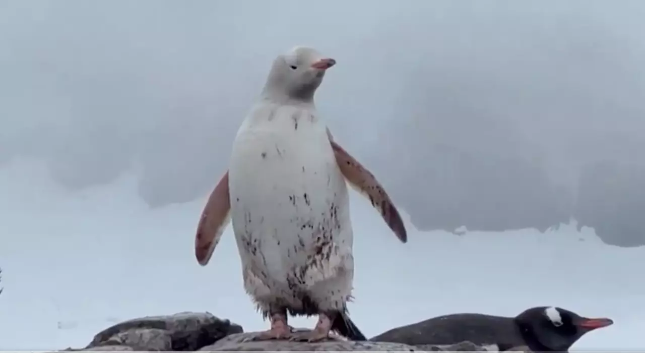 สื่อต่างชาติเผยคลิปภาพของเพนกวินเผือกหายาก อยู่ท่ามกลางเพนกวินตัวอื่นๆ ในชิเลียนแอนตาร์กติก ซึ่งผู้เชี่ยวชาญชี้ว่าภาวะดังกล่าวจะทำให้มันถูกพบโดยสัตว์ผู้ล่าได้ง่ายขึ้น