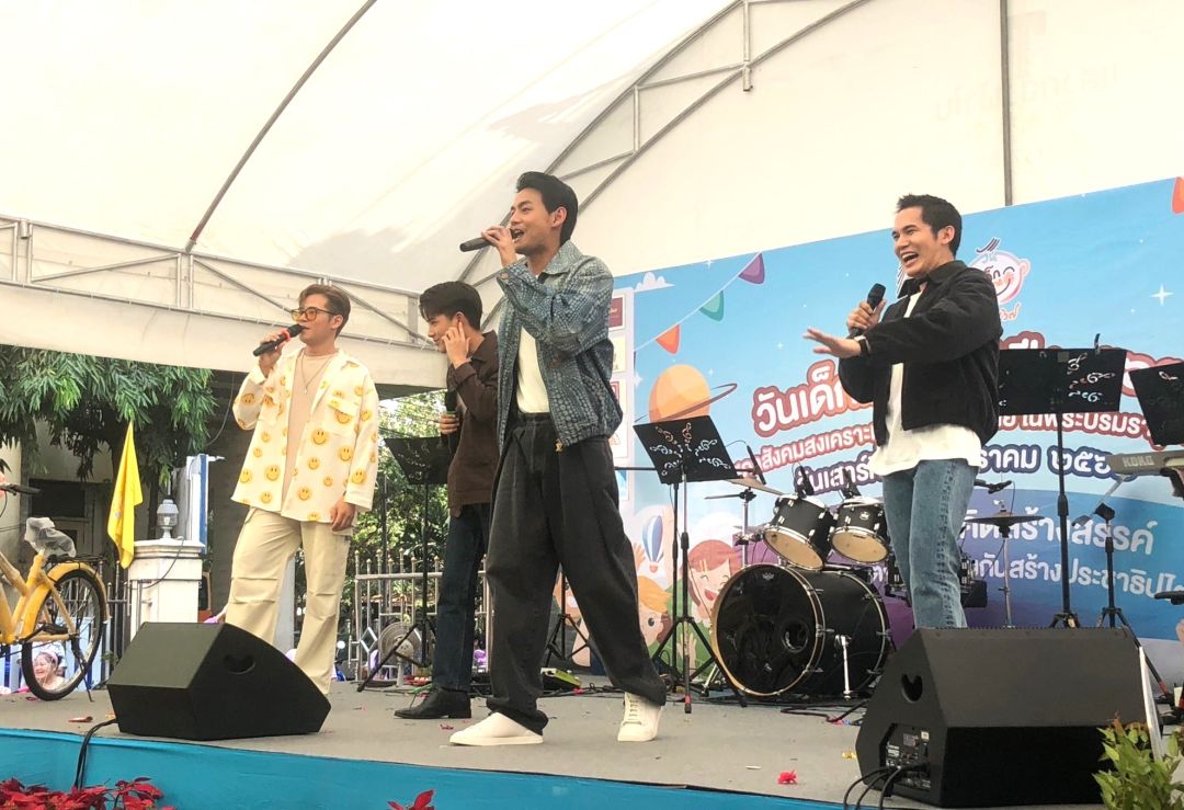 4 หนุ่มก็ฝากถึงน้อง ๆทุกคน ว่า “วันเด็กเป็นวันสำคัญของเด็ก ๆ ดีใจที่ได้มามอบความสุขมาให้แรงบันดาลใจให้น้อง ๆ ได้มีความสุขในวันของเขา อยากให้เด็กทุกคนคิดดีทำดี เพราะเป็นรากฐานสำคัญในการเติบโตเป็นผู้ใหญ่ที่ดี อยากให้น้อง ๆ เก็บเกี่ยวประสบการณ์ที่ดี ซื่อสัตย์กับความฝันของตัวเอง และไปให้ถึงเป้าหมายโดยเร็ว ที่สำคัญมีความสุขกับชีวิตมาก ๆ ครับ”นอกจากนี้ภายในงานยังมีกิจกรรมเล่นเกมแจกของรางวัลมากมาย รวมถึงมีอาหารจากผู้สนับสนุนหลายซุ้มให้น้องๆ และผู้ปกครองได้เลือกทานกันอย่างเพลิดเพลิน เรียกว่าจบงานเด็กๆ มีของขวัญกลับบ้าน ยิ้มแก้มปริกันทุกคน