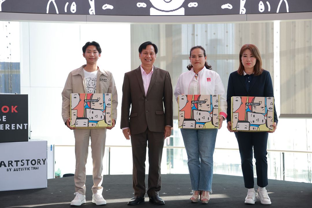 ด้าน วชิรา การสุทธิ์ ผู้ช่วยผู้อำนวยการ ธนาคารออมสิน ผู้ใหญ่ใจดีที่ให้การสนับสนุนการจัดกิจกรรม กล่าวว่า “ธนาคารออมสินตั้งเป้าหมายภารกิจหลักในการดำเนินนโยบายไปสู่การเป็น “ธนาคารเพื่อสังคม” หรือ Social Bank ซึ่งหนึ่งในแกนหลักของการดำเนินงานก็คือการให้การสนับสนุนส่งเสริมศักยภาพของกลุ่มเปราะบาง โดยความร่วมมือกับมูลนิธิออทิสติกไทยนั้น เป็นกิจกรรมที่ธนาคารทำมาตั้งแต่ปี 2566 โดยเปิดโอกาสให้ศิลปินเด็กออทิสติกของมูลนิธิฯ เป็นผู้วาดลวดลายบนกระปุกออมสินที่ใช้แจกในแคมเปญวันเด็ก ซึ่งเป็นการจ้างงานผ่านบริษัท ออทิสติกไทยวิสาหกิจเพื่อสังคม จำกัด (ARTSTORY BY AUTISTIC THAI) เพื่อให้เด็กพิเศษได้แสดงออกถึงศักยภาพและความชำนาญในการใช้ศิลปะบำบัด อีกทั้งยังสามารถนำมาต่อยอดสร้างรายได้ช่วยเหลือตนเองและครอบครัว นโยบายดังกล่าวสอดคล้องกับจุดยืนของธนาคารออมสิน ที่มุ่งสร้างผลลัพธ์เชิงบวกในการลดความเหลื่อมล้ำในสังคม”