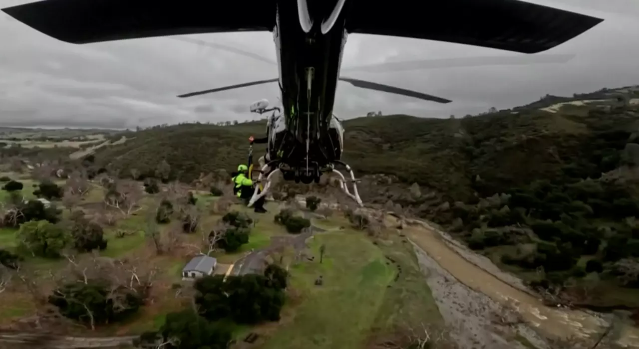 เจ้าหน้าที่หน่วยกู้ภัยลิเวอร์มอร์ รัฐแคลิฟอร์เนียของสหรัฐฯ ใช้เชือกโรยตัวจากเฮลิคอปเตอร์ เพื่อช่วยชีวิตหญิงรายหนึ่งที่ติดอยู่กลางน้ำท่วม หลังจากที่รถปิกอัพที่เธอขับฝ่าน้ำท่วม ถูกกระแสน้ำเชี่ยวพัดจนพลิกคว่ำจมอยู่กลางน้ำ เคราะห์ดีที่เธอไม่ได้รับอันตรายรุนแรง และหาทางปีนออกจากตัวรถมารอความช่วยเหลือ แต่เธอก็ไม่สามารถฝ่ากระแสน้ำเชี่ยวกรากออกมาเองได้ โดยกว่าที่เจ้าหน้าที่จะได้รับแจ้งเหตุและถึงตัวเธอได้ก็กินระยะเวลานานเกือบ 15 ชั่วโมง ท่ามกลางสภาพอากาศหนาวเย็นจัด