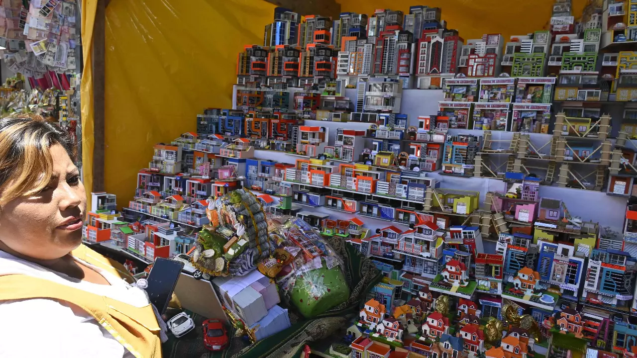 ชาวโบลิเวียแห่ไปร่วมงานเทศกาลบูชา “เอเคโค” เทพเจ้าแห่งความอุดมสมบูรณ์ ด้วยการซื้อของจิ๋วทั้งบ้าน รถและธนบัตร วางไว้รอบตัวรูปปั้นองค์เทพ