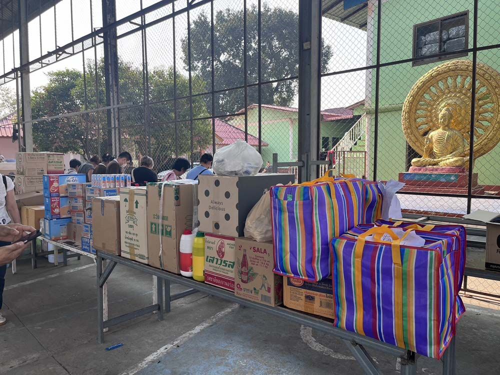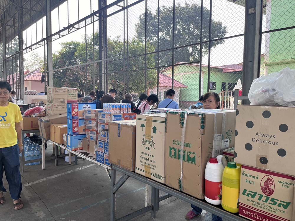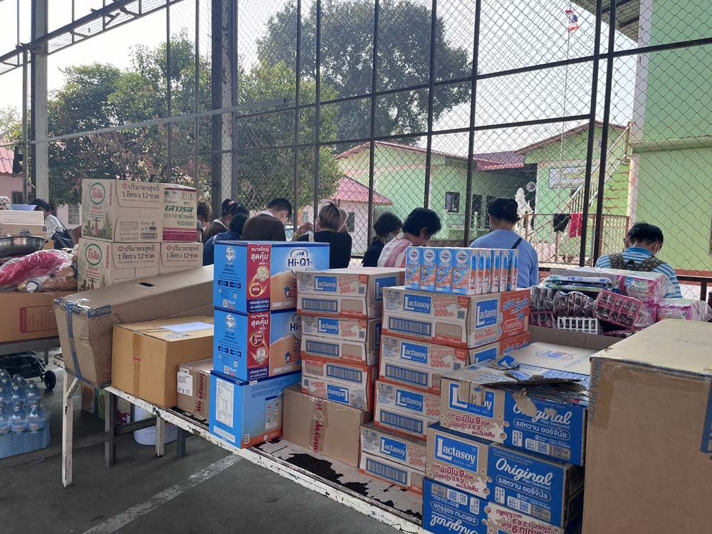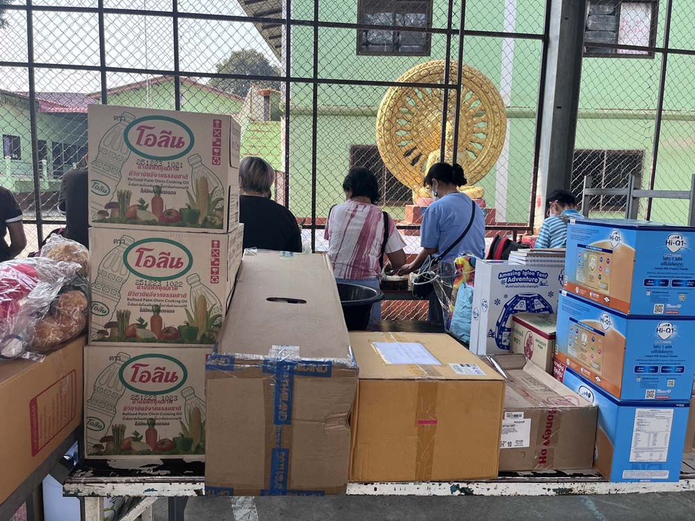 ในวันที่คณะของเราไปเลี้ยงอาหารเด็กนั้นเราได้นำสิ่งของต่างๆ ไปมอบให้เด็กด้วย อาทิ นมผงคุณภาพดีสำหรับเด็กอ่อน (จำนวน3 กล่องใหญ่ กล่องละ 3.8 กิโลกรัม) และยังมีของกิน และของใช้อีกสารพัดอย่าง เช่น ยาสีฟัน แปรงสีฟัน แชมพูสำหรับอาบน้ำและสระผม ของเล่น และอุปกรณ์กีฬา รวมถึงเสื้อผ้าโดยของเหล่านั้นเราได้แจ้งกับครูว่า ครูสามารถนำไปใช้ได้ เพราะเรานำมาเผื่อแผ่ให้ครูด้วย นอกจากนั้น ผู้ร่วมคณะของเรายังได้มอบของสดสำหรับทำอาหารมื้อต่อๆ ไปสำหรับถวายพระและเณร รวมถึงเป็นอาหารสำหรับเด็กๆ อีกด้วย