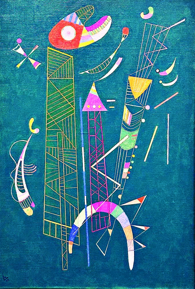 ในกลุ่ม The Blue Four นอกจากจะมี Paul Klee ที่มีชื่อเสียงมากแล้ว Wassily Kandinsky ก็เป็นศิลปินรัสเซียอีกคนหนึ่งที่โด่งดังมาก เขาเกิดในครอบครัวคนขายชาในเมืองมอสโก เขาได้รับการศึกษาที่หลากหลายในมอสโก ทั้งทางด้านกฎหมาย และเศรษฐศาสตร์ ในปี 1889 เขามีส่วนร่วมในการทำวิจัยเกี่ยวกับชาติพันธ์ุทำให้เขาได้ศึกษาเพิ่มเติมเกี่ยวกับศิลปะพื้นเมืองส่งผลให้เขาสนใจงานจิตรกรรมที่มีสีสันสดใส ปี 1896 เขาตัดสินใจเลิกอาชีพครูสอนกฎหมายและเศรษฐศาสตร์และสมัครเข้าเรียนศิลปะที่ Munich Academy แต่กลับไม่ได้เข้าเรียนจึงทำให้เขาต้องเรียนศิลปะเอง ในช่วงนั้นเขาได้มีโอกาสเห็นผลงานของ Monet ในนิทรรศการหนึ่งและได้ใช้ภาพกองฟางเป็นแรงบันดาลใจเกี่ยวกับสีในการสร้างสรรค์ผลงาน