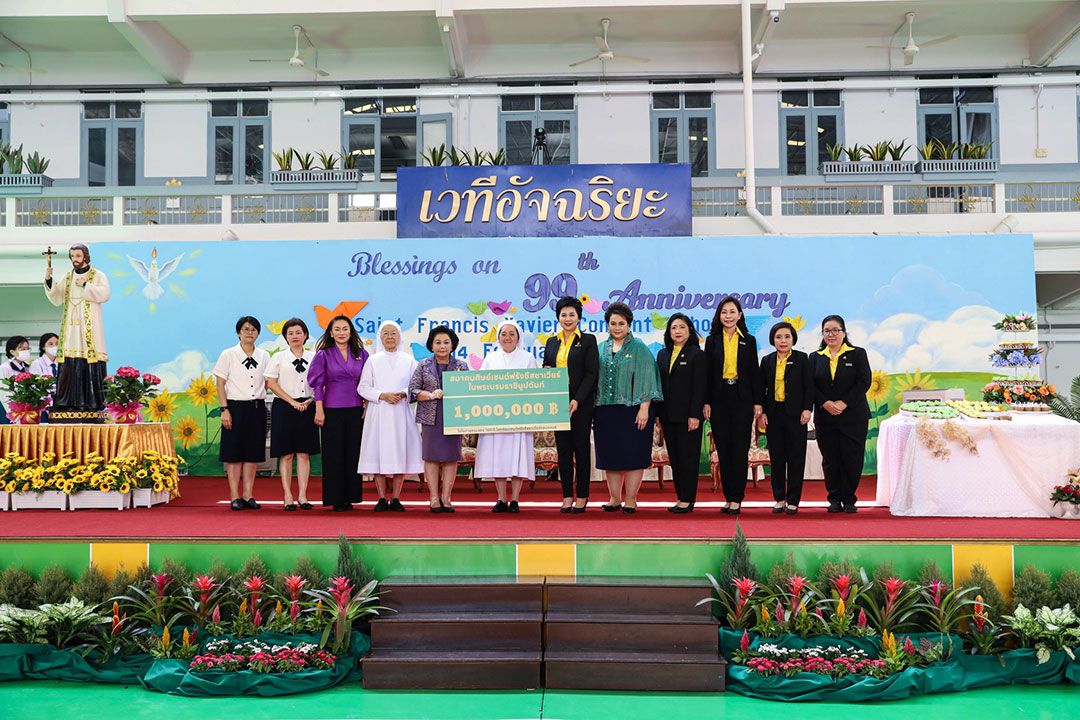 สมาคมศิษย์เซนต์ฟรังซีสซาเวียร์ ในพระบรมราชินูปถัมภ์ โดย ดร.ศศมณฑ์ สงวนสิน นายกสมาคมฯ มอบเงิน 1,000,000 บาท ให้แก่โรงเรียนเซนต์ฟรังซีสซาเวียร์คอนแวนต์ โดย เซอร์มารีย์ หลุยส์ นิภา พรฤกษ์งาม อธิการิณีโรงเรียนฯ เป็นผู้รับมอบ และมอบรางวัล SF Gracious Lady แก่นักเรียนทุกระดับชั้น เนื่องในวันสถาปนาโรงเรียนเซนต์ฟรังฯ ครบ 99 ปี ภายใต้ชื่องาน “Blessings on 99th Anniversary” มีศิษย์เก่าร่วมแสดงความยินดี อย่างคับคั่ง อาทิ ดร.พวงเพ็ชร ชุนละเอียด รัฐมนตรีประจำสำนักนายกรัฐมนตรี, ศุภมาส อิศรภักดี รัฐมนตรีว่าการกระทรวงการอุดมศึกษาวิทยาศาสตร์ วิจัยและนวัตกรรม, ผศ.ศิริพร มณีพันธุ์, จิราพร กาญจนพิทักษ์, เปรมทิพย์ กมลศักดิ์กำจร, กชกร วงศ์จริยะเกษม ฯลฯ ณ สนามโรงเรียนฯ วันก่อน